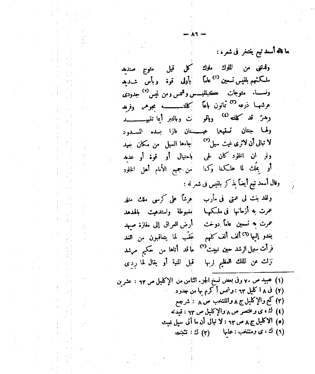 وقال أسعد تبع أيضاً يذكر بلقيس في شعر له: