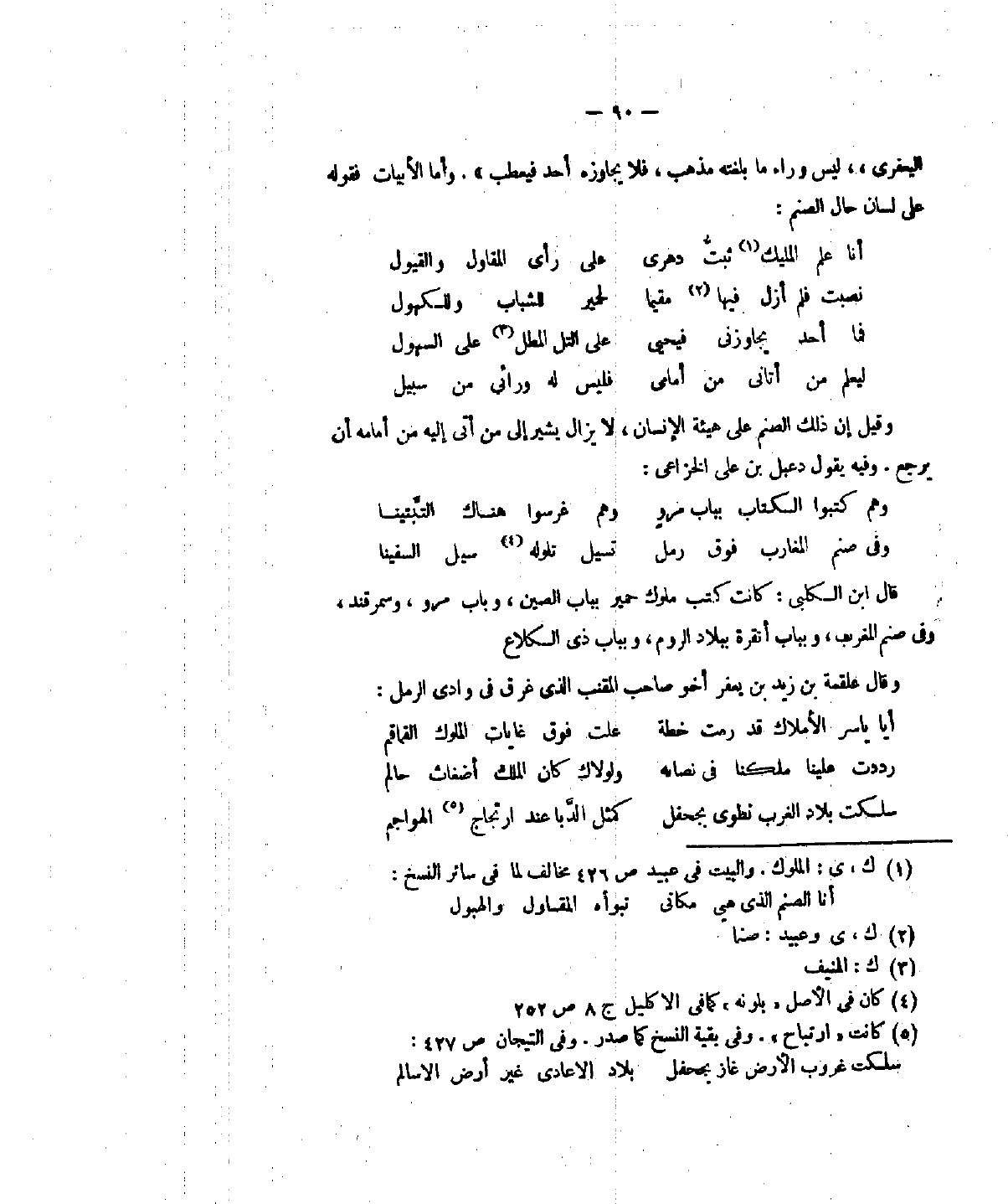 وقيل إنَّ ذلك الصنم على هيئة الانسان، لا يزال يشير إلى من أتى إليه من أمامه أنْ يرجع. وفيه يقول دعبل بن على الخزاعي: