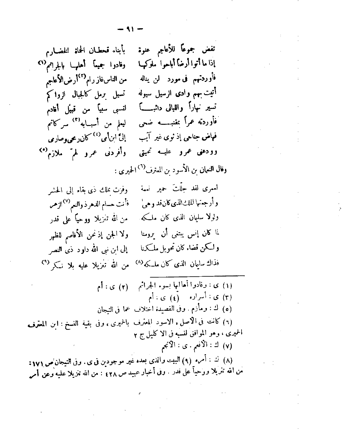 لعمري لقد جللت حمير نعمة ... وفرت بملك ذي بقاء إلى الحشر