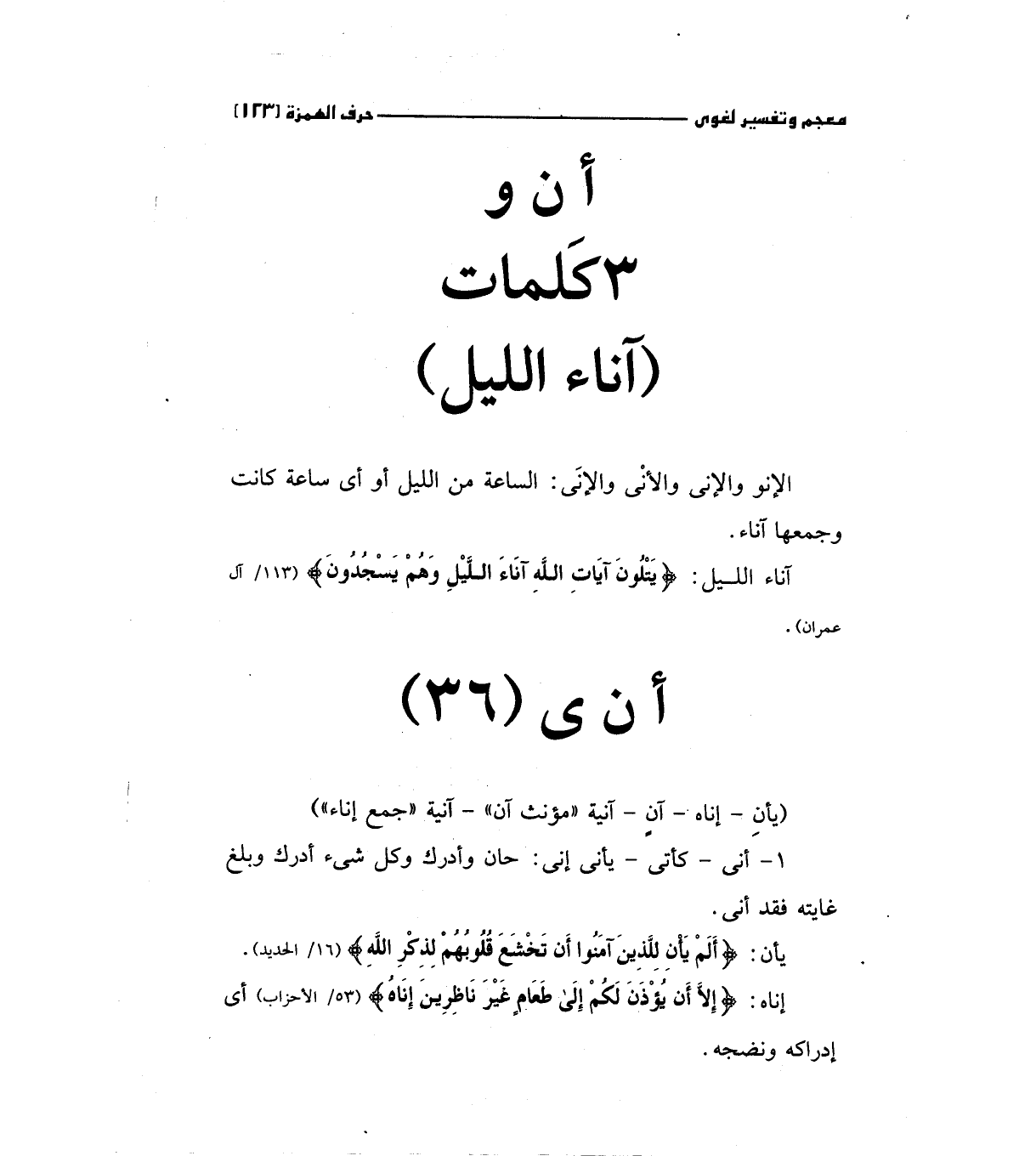 يأن: (أَلَمْ يَأْنِ لِلَّذِينَ آمَنُوا أَنْ تَخْشَعَ قُلُوبُهُمْ لِذِكْرِ اللَّهِ) " 16/ الحديد ".