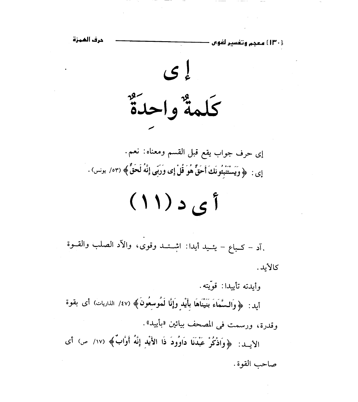 أيد: (وَالسَّمَاءَ بَنَيْنَاهَا بِأَيْيدٍ وَإِنَّا لَمُوسِعُونَ (47)) "47/الذاريات) أي بقوة وقدرة، ورسمت في المصحف بيائين "بأييد".