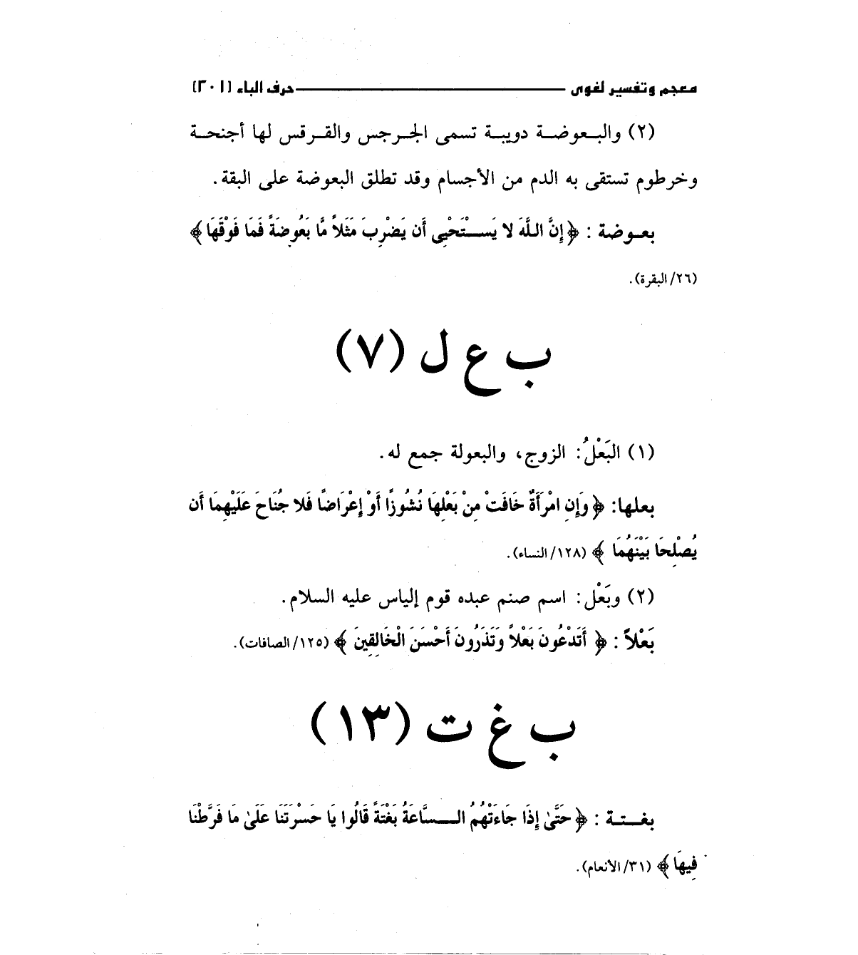 1 - البعل: الزوج، والبعولة جمع له. بعلها: (وَإِنْ امْرَأَةٌ خَافَتْ مِنْ بَعْلِهَا نُشُوزاً أَوْ إِعْرَاضاً فَلا جُنَاحَ عَلَيْهِمَا أَنْ يُصْلِحَا بَيْنَهُمَا) " 128/النساء ".