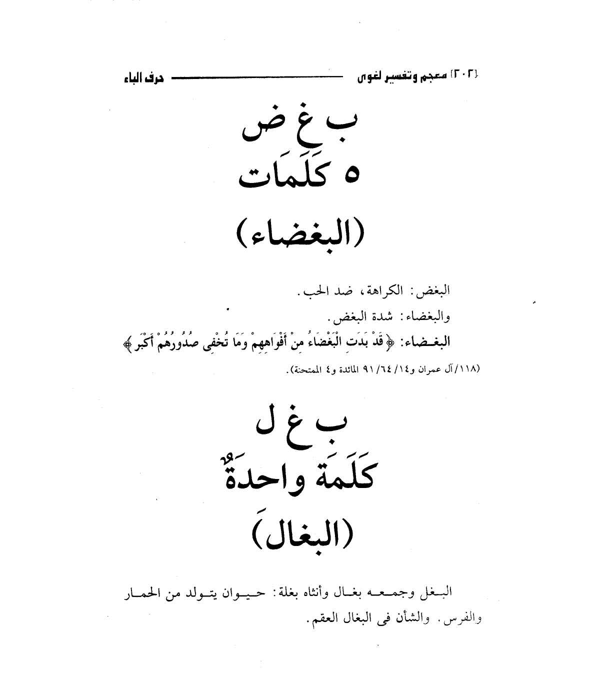 البغضاء: (قَدْ بَدَتْ الْبَغْضَاءُ مِنْ أَفْوَاهِهِمْ وَمَا تُخْفِي صُدُورُهُمْ أَكْبَرُ) " 118/آل عمران و14/ 64/91/المائدة و4 الممتحنة ".