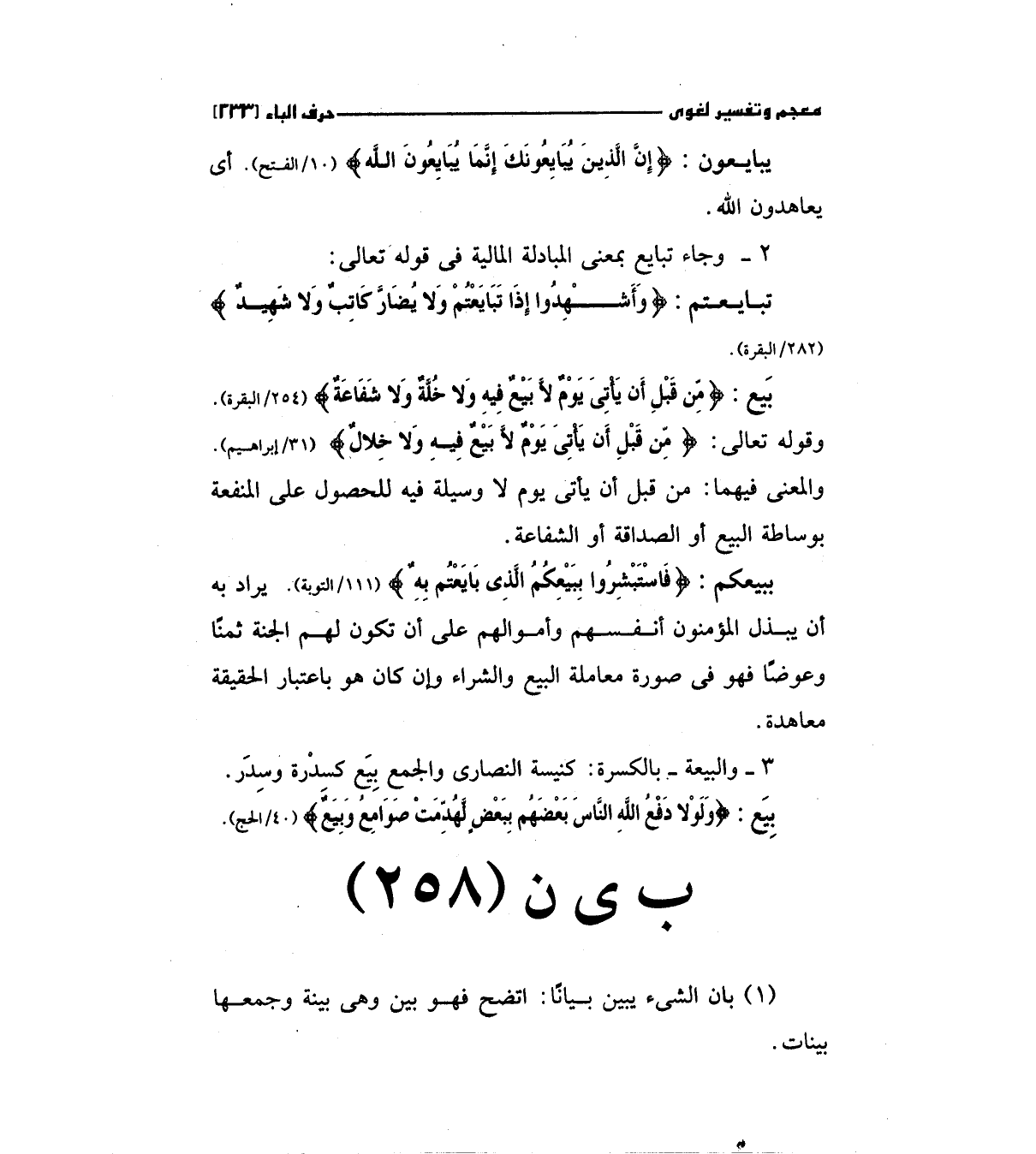 بيع: (مِنْ قَبْلِ أَنْ يَأْتِيَ يَوْمٌ لا بَيْعٌ فِيهِ وَلا خُلَّةٌ وَلا شَفَاعَةٌ) (254/البقرة) وقوله تعالى: (مِنْ قَبْلِ أَنْ يَأْتِيَ يَوْمٌ لا بَيْعٌ فِيهِ وَلا خِلالٌ) (31/إبراهيم)