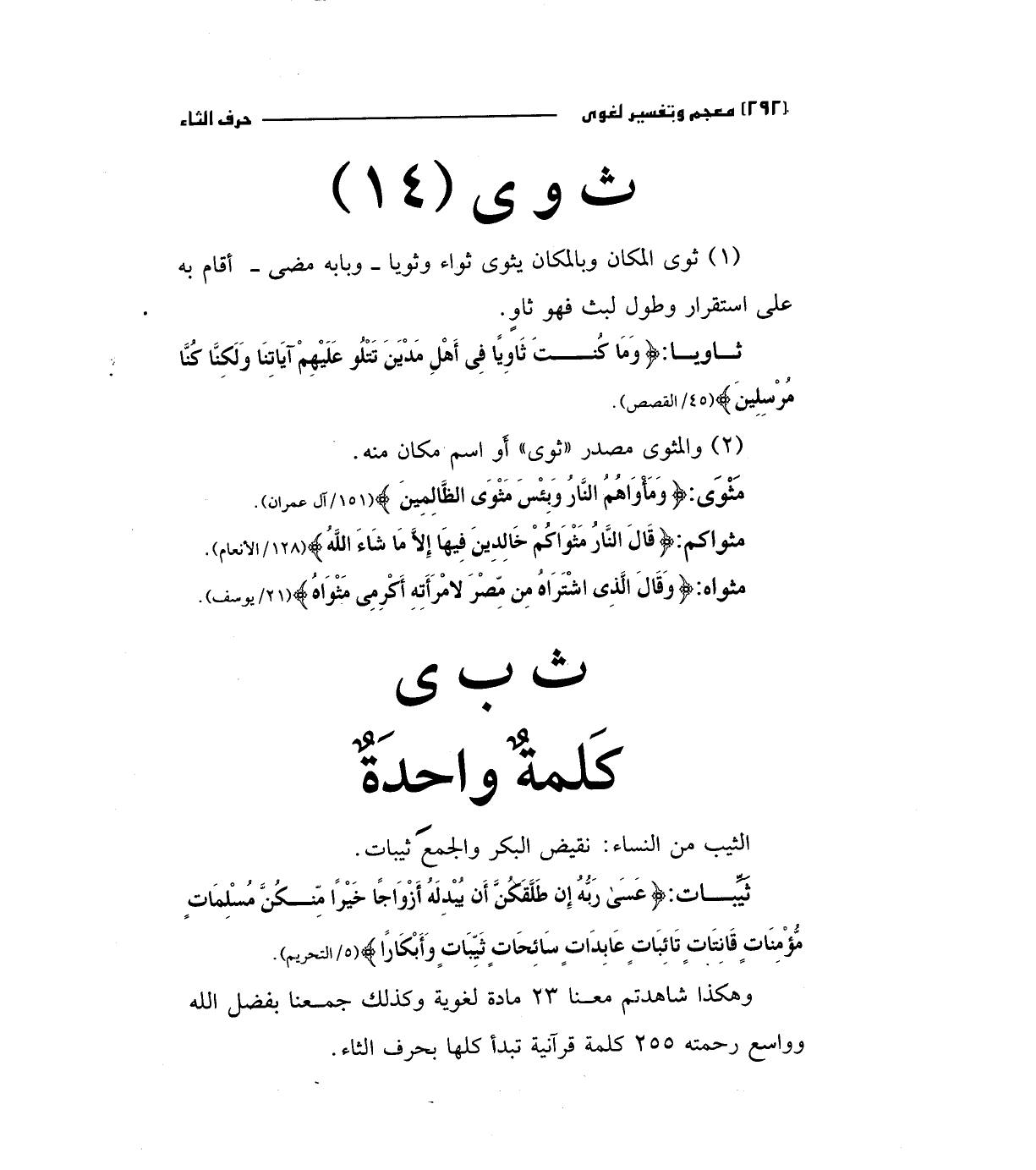 وهكذا شاهدتم معنا 23 مادة لغوية وكذلك جمعنا بفضل الله وواسع رحمته 255 كلمة قرآنية تبدأ كلها بحرف الثاء.