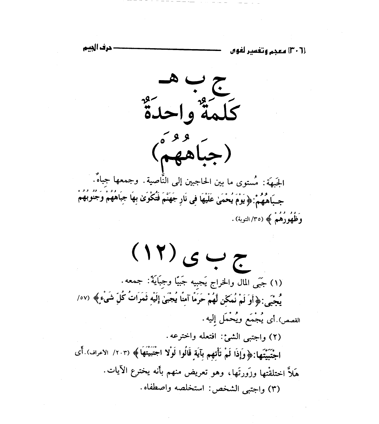 يجبي: (أَوَلَمْ نُمَكِّنْ لَهُمْ حَرَماً آمِناً يُجْبَى إِلَيْهِ ثَمَرَاتُ كُلِّ شَيْءٍ) "57/القصص " أي يجمع ويحمل إليه.
