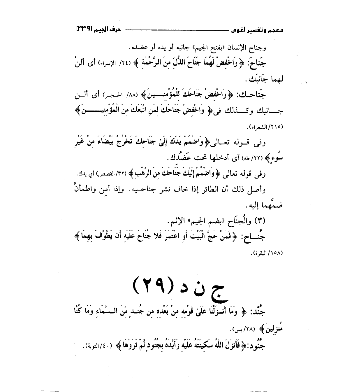 جناح: (وَاخْفِضْ لَهُمَا جَنَاحَ الذُّلِّ مِنْ الرَّحْمَةِ) "24/الإسراء " أي ألن لهما جانبك.