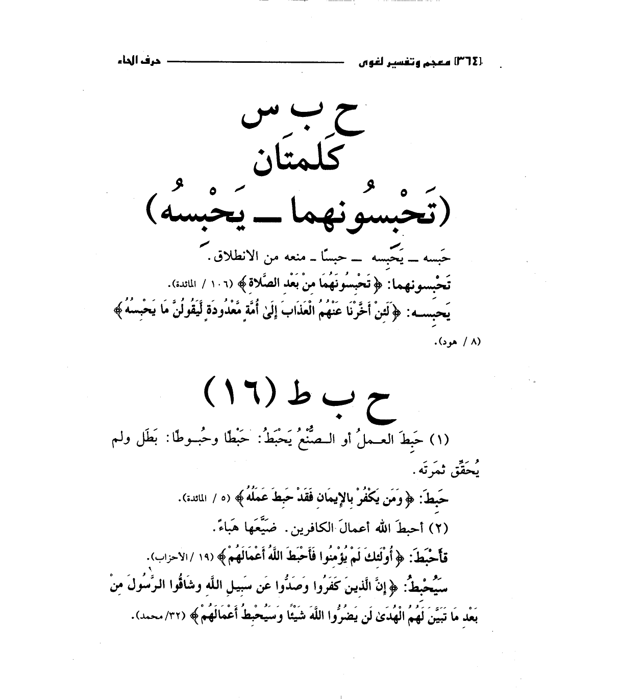 حبط: (وَمَنْ يَكْفُرْ بِالإِيمَانِ فَقَدْ حَبِطَ عَمَلُهُ) "5/المائدة ".