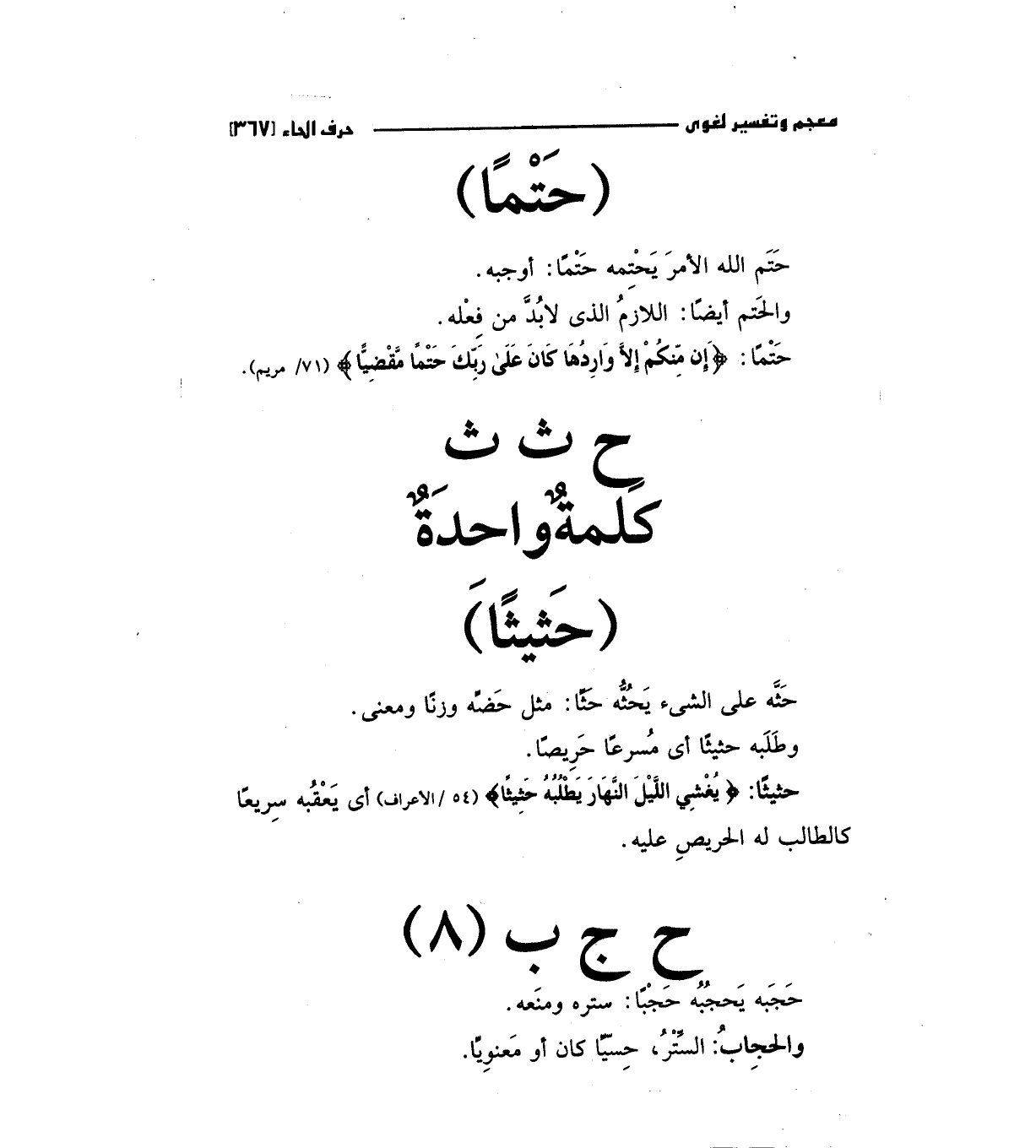 حتما: (وَإِنْ مِنْكُمْ إِلاَّ وَارِدُهَا كَانَ عَلَى رَبِّكَ حَتْماً مَقْضِيّاً) "71/مريم ".