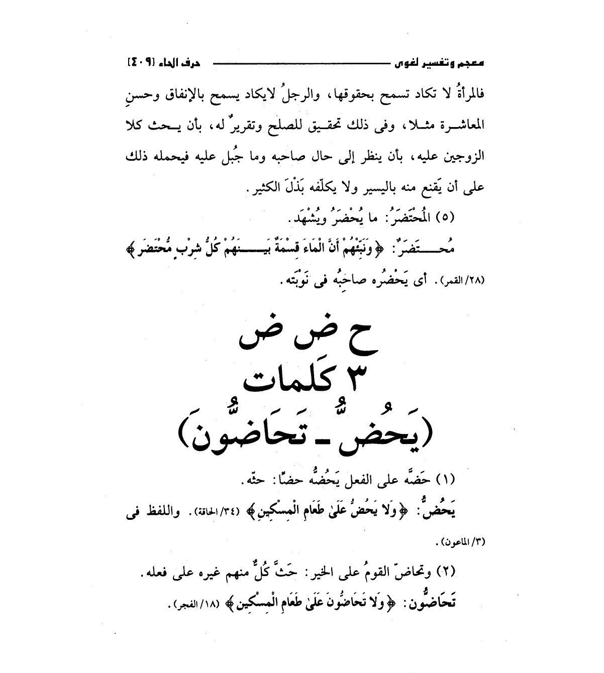 يحض: (وَلا يَحُضُّ عَلَى طَعَامِ الْمِسْكِينِ) "34/الحاقة" واللفظ في (3/الماعون ".