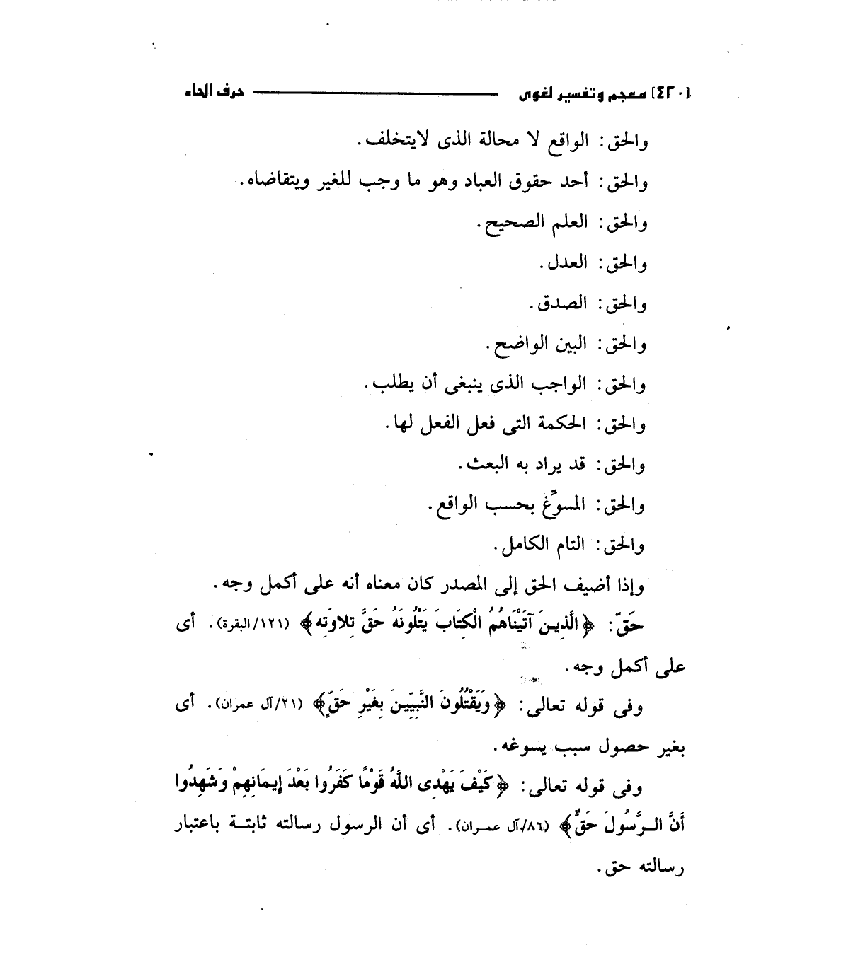 حق: (الَّذِينَ آتَيْنَاهُمْ الْكِتَابَ يَتْلُونَهُ حَقَّ تِلاوَتِهِ) " 121/البقرة ". أي علي أكمل وجه.