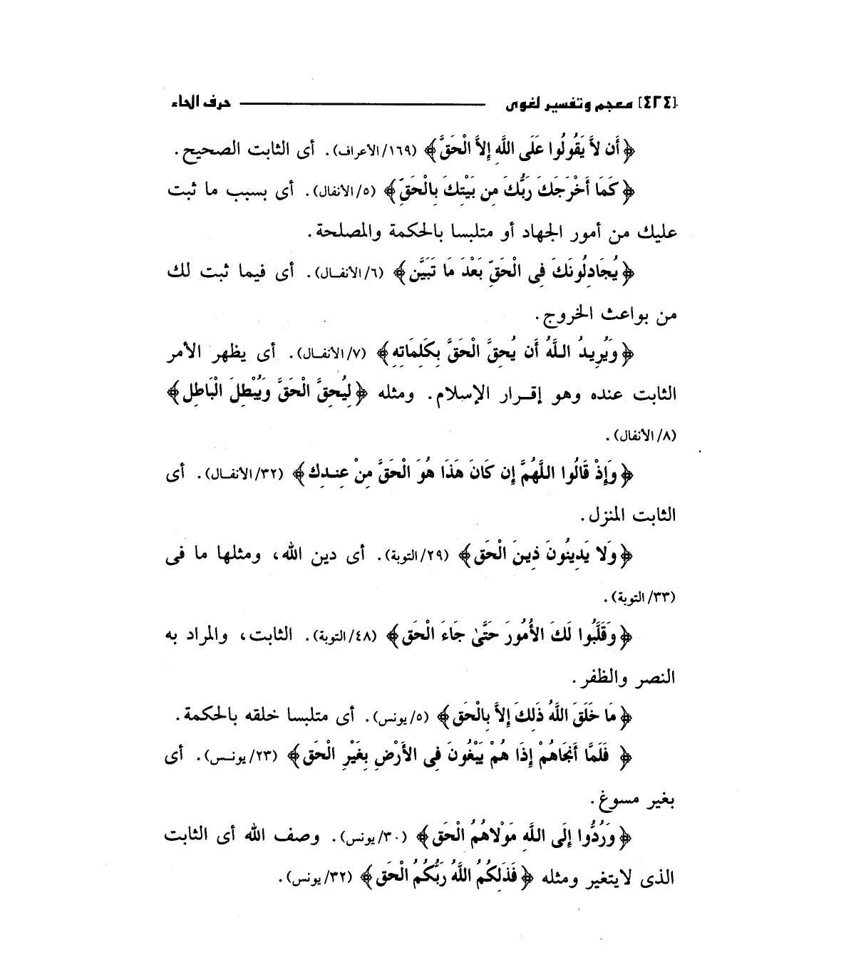 (وَيُرِيدُ اللَّهُ أَنْ يُحِقَّ الْحَقَّ بِكَلِمَاتِهِ) " 7/الأنفال " أي يظهر الأمر الثابت عنده وهو إقرار الإسلام. ومثله (لِيُحِقَّ الْحَقَّ وَيُبْطِلَ الْبَاطِلَ) "8/الأنفال".