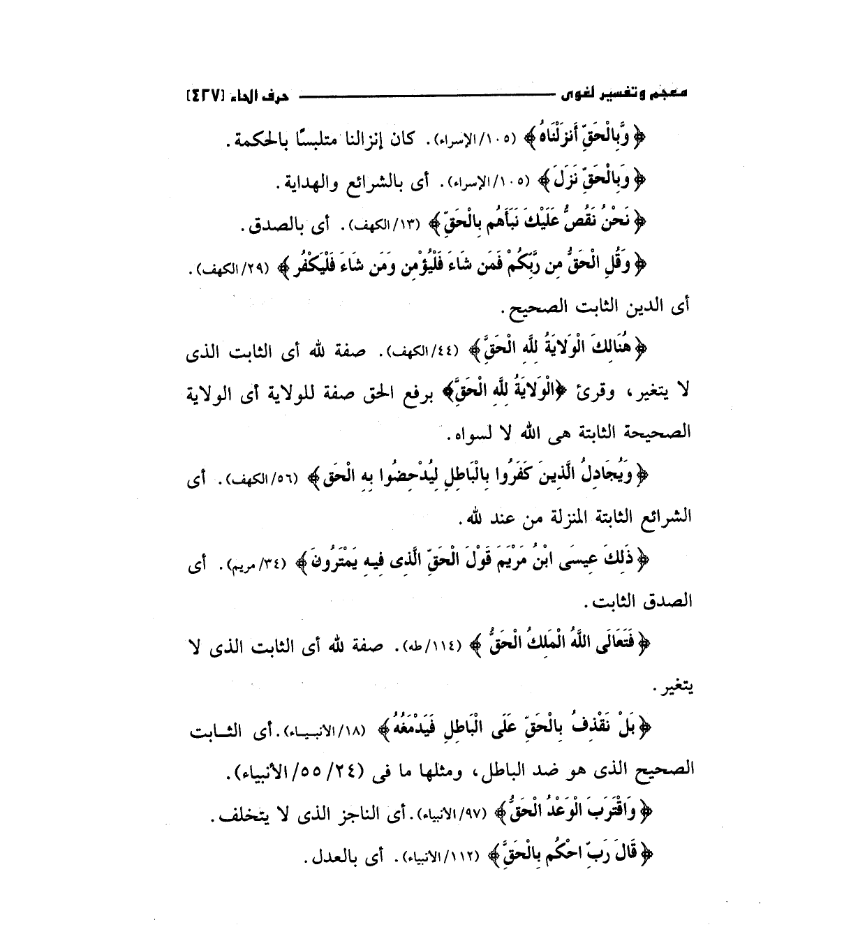 (وَيُجَادِلُ الَّذِينَ كَفَرُوا بِالْبَاطِلِ لِيُدْحِضُوا بِهِ الْحَقَّ) "56/الكهف" أي الشرائع الثابتة المنزلة من عند الله.