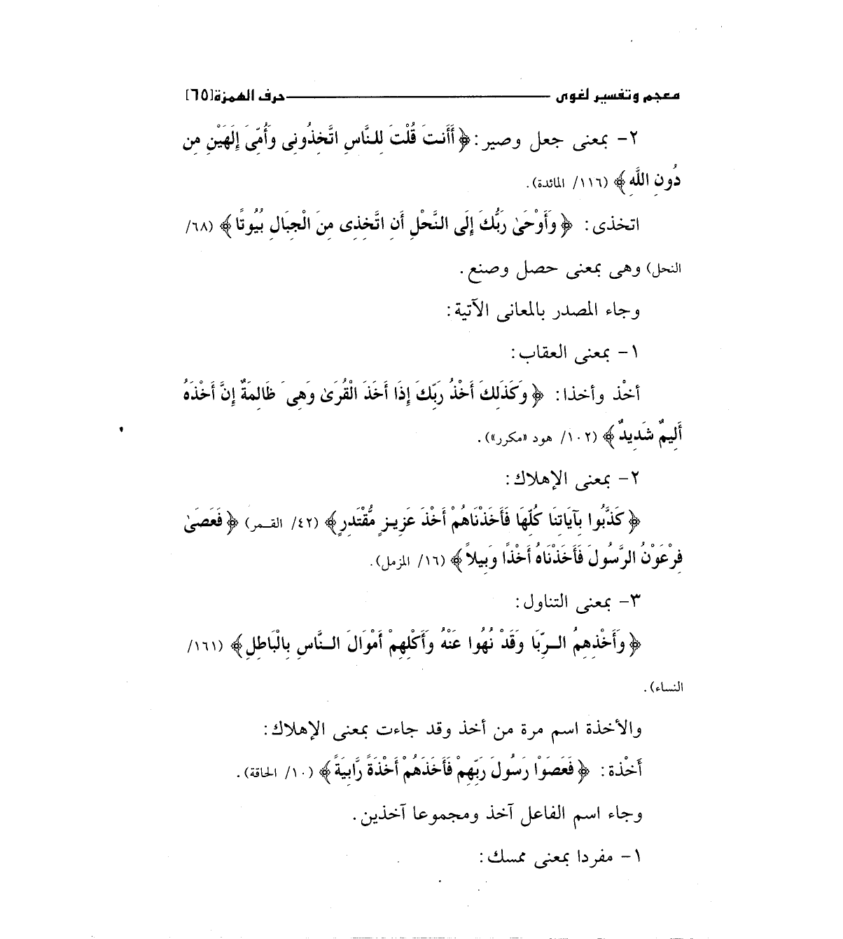 أخذ واخذا: (وَكَذَلِكَ أَخْذُ رَبِّكَ إِذَا أَخَذَ الْقُرَى وَهِيَ ظَالِمَةٌ إِنَّ أَخْذَهُ أَلِيمٌ شَدِيدٌ (102)) " 102/ هود " مكرر" "