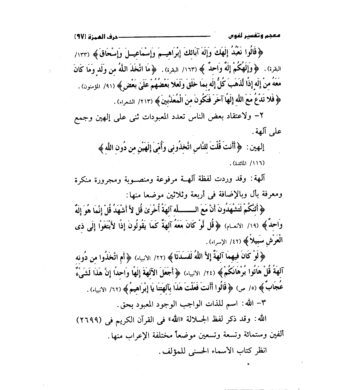 (قَالُوا نَعْبُدُ إِلَهَكَ وَإِلَهَ آبَائِكَ إِبْرَاهِيمَ وَإِسْمَاعِيلَ وَإِسْحَقَ) "133/ البقرة " (وَإِلَهُكُمْ إِلَهٌ وَاحِدٌ) "163/ البقرة " (مَا اتَّخَذَ اللَّهُ مِنْ وَلَدٍ وَمَا كَانَ مَعَهُ مِنْ إِلَهٍ إِذاً لَذَهَبَ كُلُّ إِلَهٍ بِمَا خَلَقَ وَلَعَلا بَعْضُهُمْ عَلَى بَعْضٍ) "91/المؤمنون ".