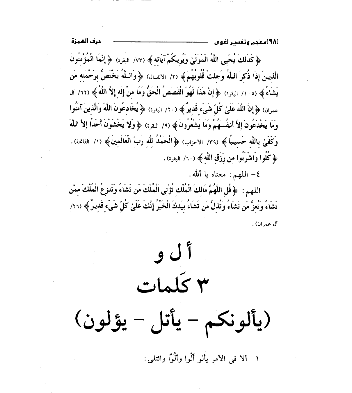 كتاب معجم وتفسير لغوى لكلمات القرآن (اسم الجزء: 1)
