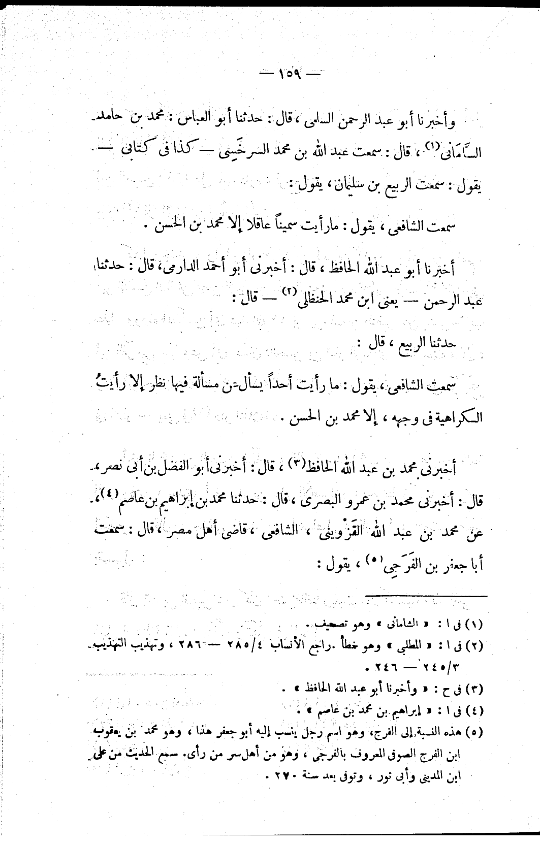 أخبرني محمد بن عبد الله الحافظ (٣)، قال: أخبرني أبو الفضل بن أبي نصر، قال: أخبرني محمد بن عمرو البصري، قال: حدثنا محمد بن إبراهيم بن عاصم (٤)، عن محمد بن عبد الله القَزْويني، الشافعي، قاضي أهل مصر، قال: سمعت أبا جعفر بن الفَرَجِي (٥)، يقول: