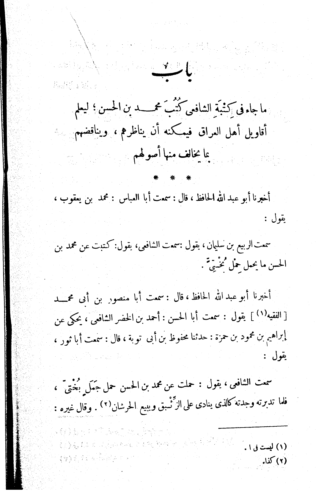 ما جاء في كِتْبَةِ الشافعي كُتُبَ محمد بن الحسن؛ ليعلم أقاويل أهل العراق فيمكنه أن يناظرهم، ويناقضهم بما يخالف منها أصولهم