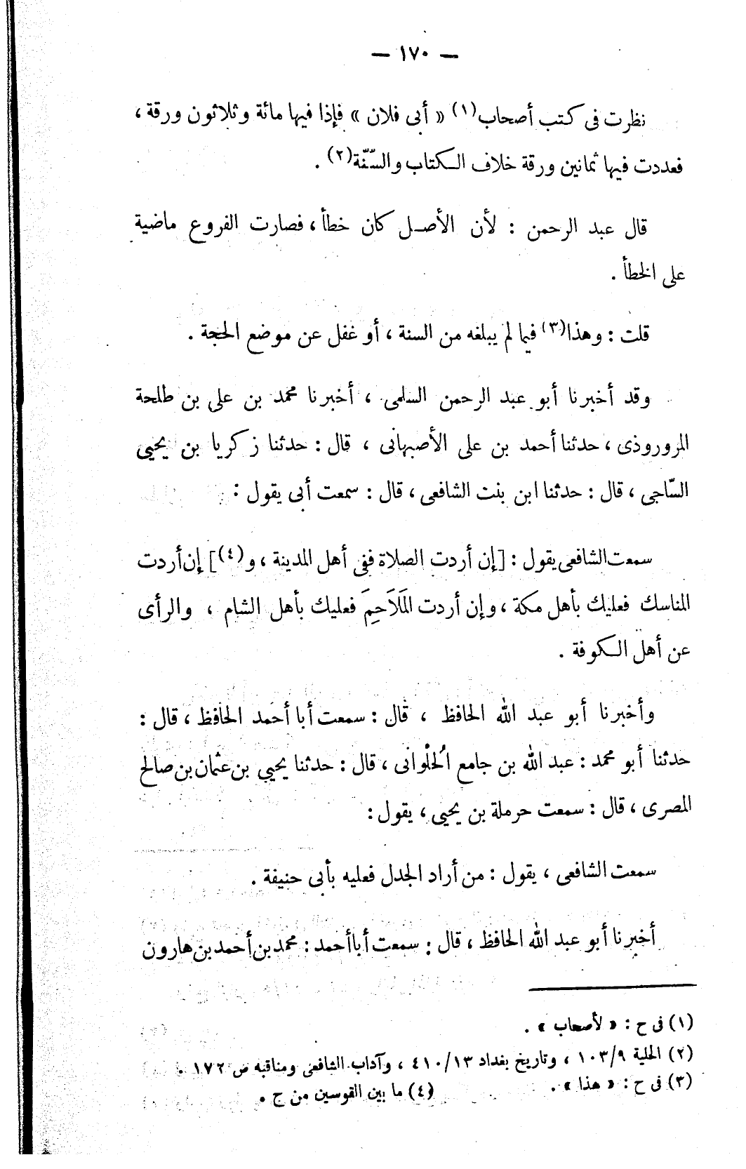 (٢) الحلية ٩/ ١٠٣، وتاريخ بغداد ١٣/ ٤١٠، وآداب الشافعي ومناقبه ص ١٧٢.