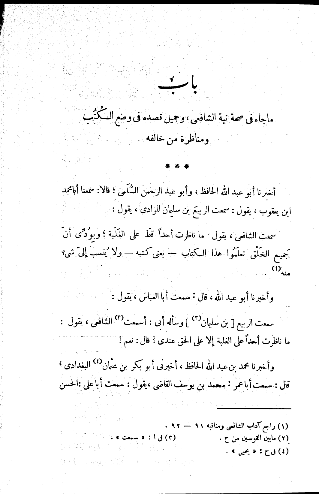 (١) راجع آداب الشافعي ومناقبه ٩١ - ٩٢.