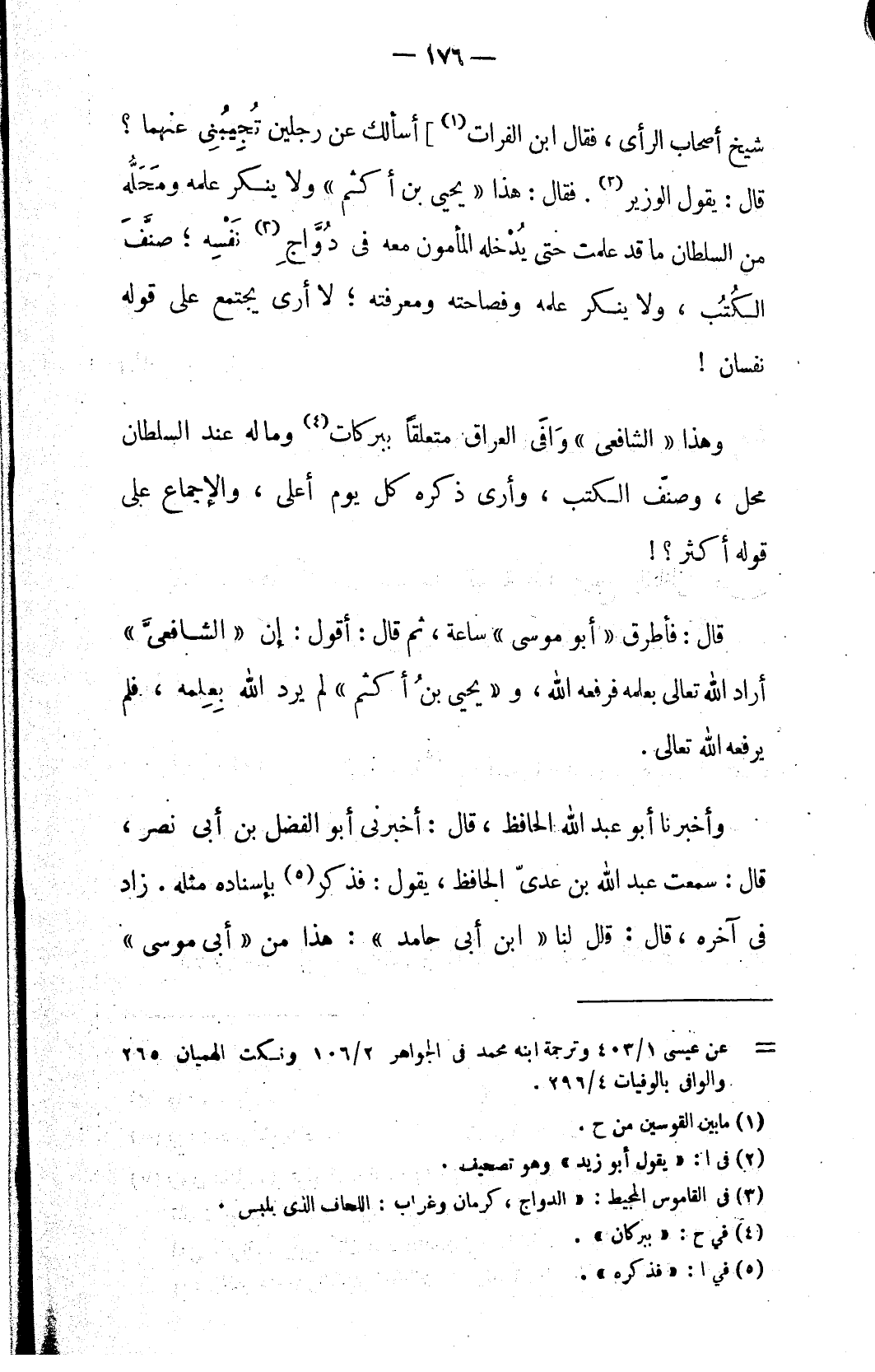 وهذا «الشافعي» وَافَى العراق متعلقاً ببركات (٤) وما له عند السلطان محل، وصنّف الكتب، وأرى ذكره كل يوم أعلى، والإجماع على قوله أكثر؟!
