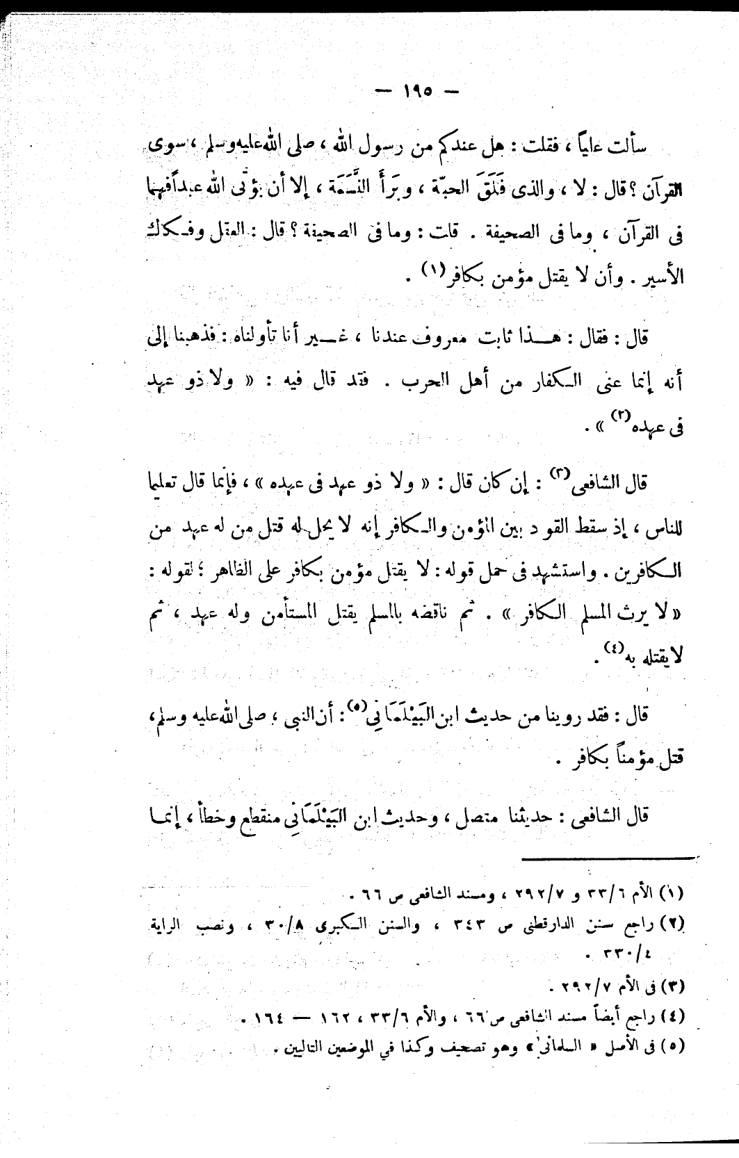 (٤) راجع أيضاً مسند الشافعي ص ٦٦، والأم ٦/ ٣٣، ١٦٢ – ١٦٤.