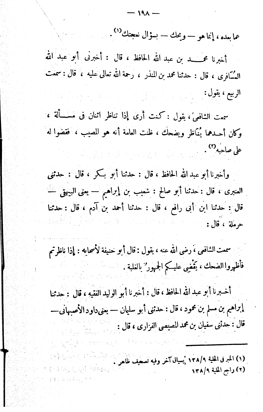أخبرنا محمد بن عبد الله الحافظ، قال: أخبرني أبو عبد الله المُسَافري، قال: حدثنا محمد بن المنذر، رحمة الله تعالى عليه، قال: سمعت الربيع، يقول: