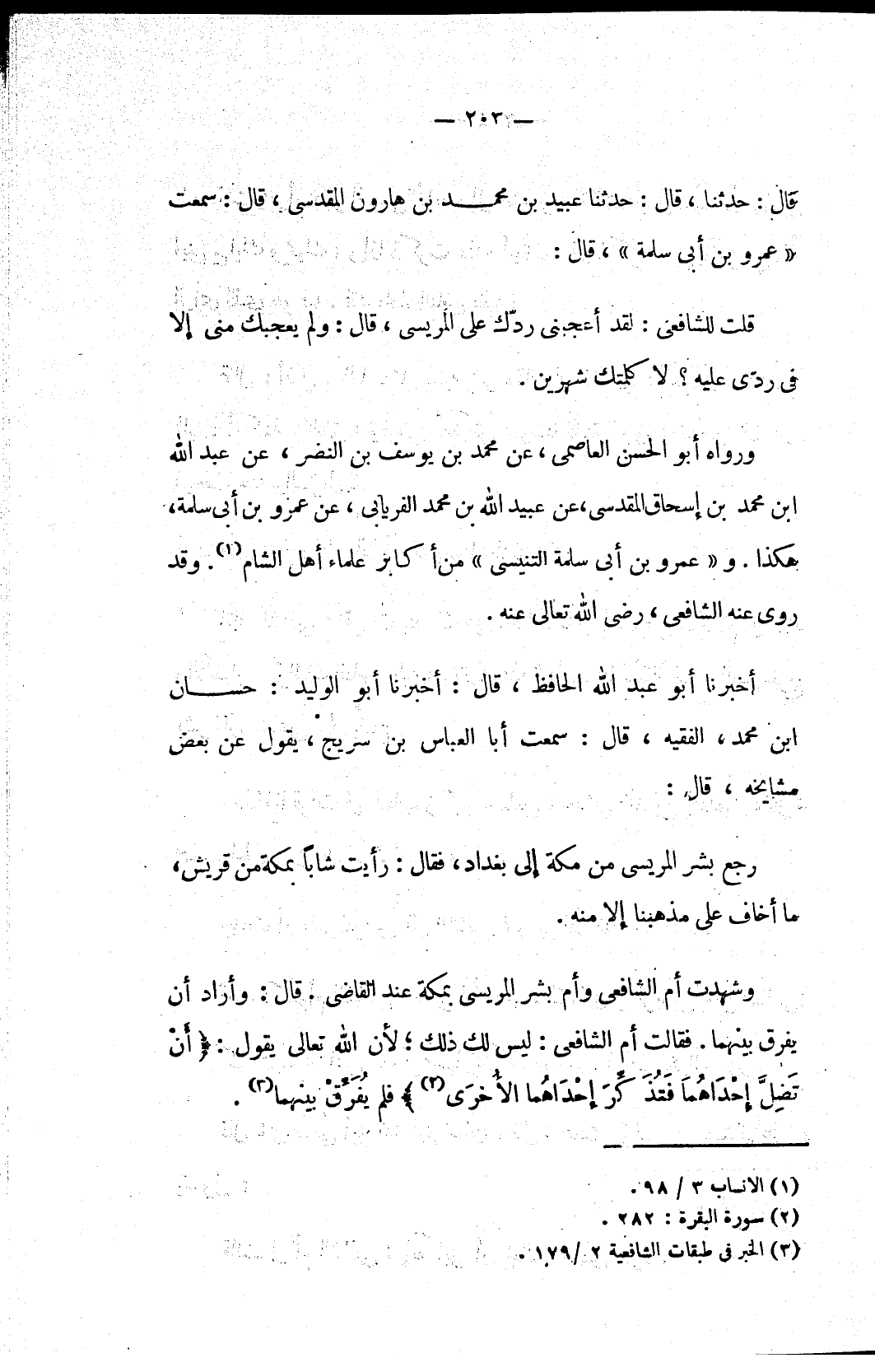 (٣) الخبر في طبقات الشافعية ٢/ ١٧٩.