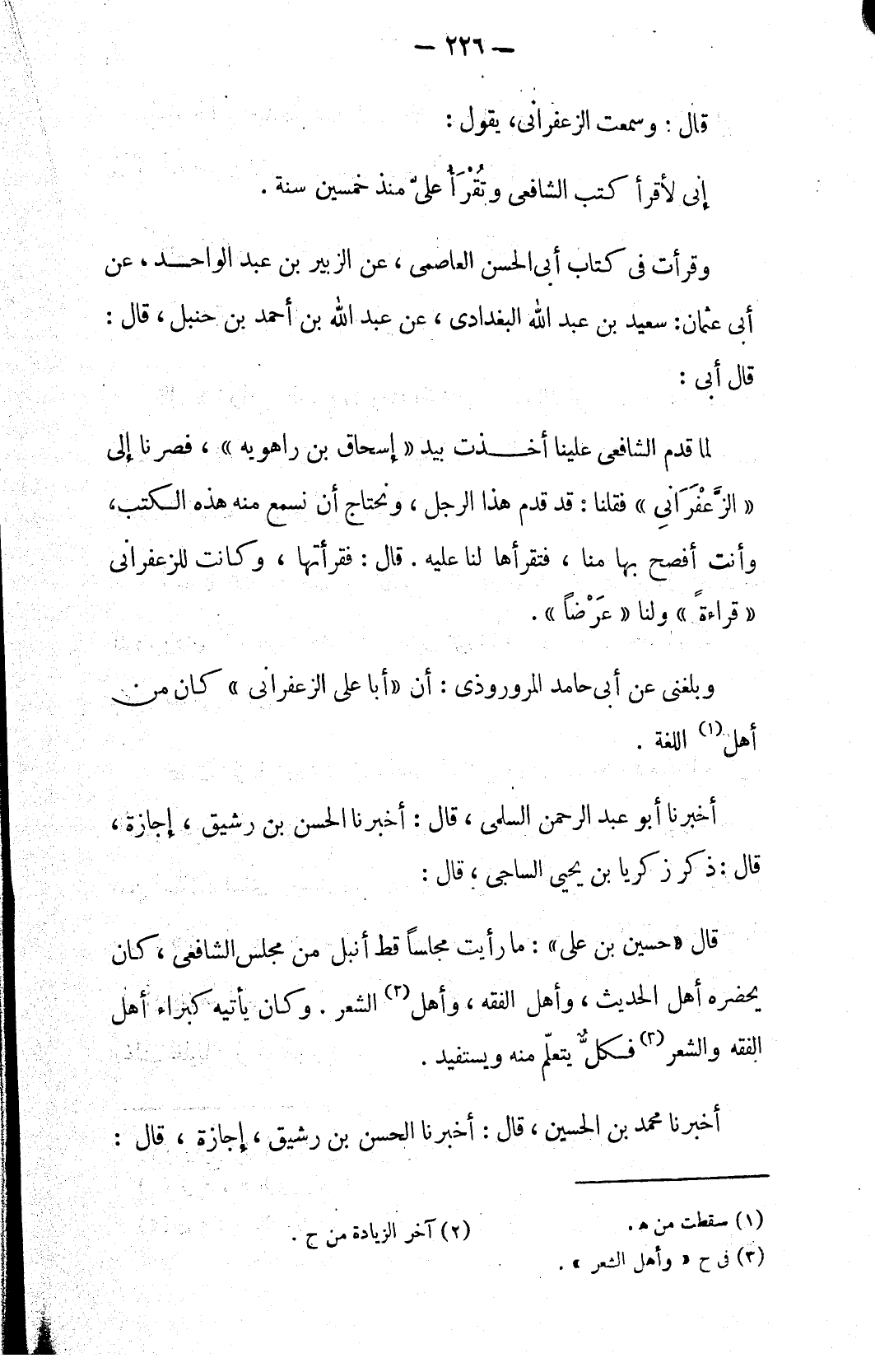 وبلغني عن أبي حامد المروروذي: أن «أبا علي الزعفراني» كان من أهل (١) اللغة.