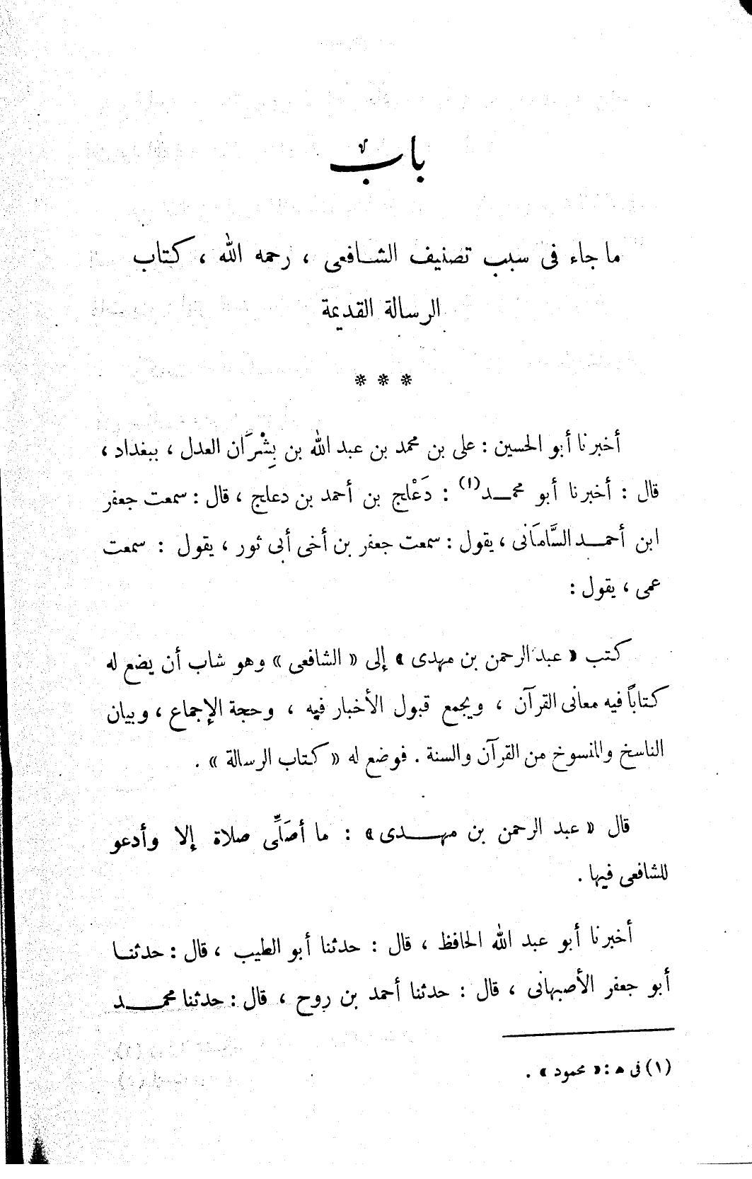 ما جاء في سبب تصنيف الشافعي، رحمه الله، كتاب الرسالة القديمة