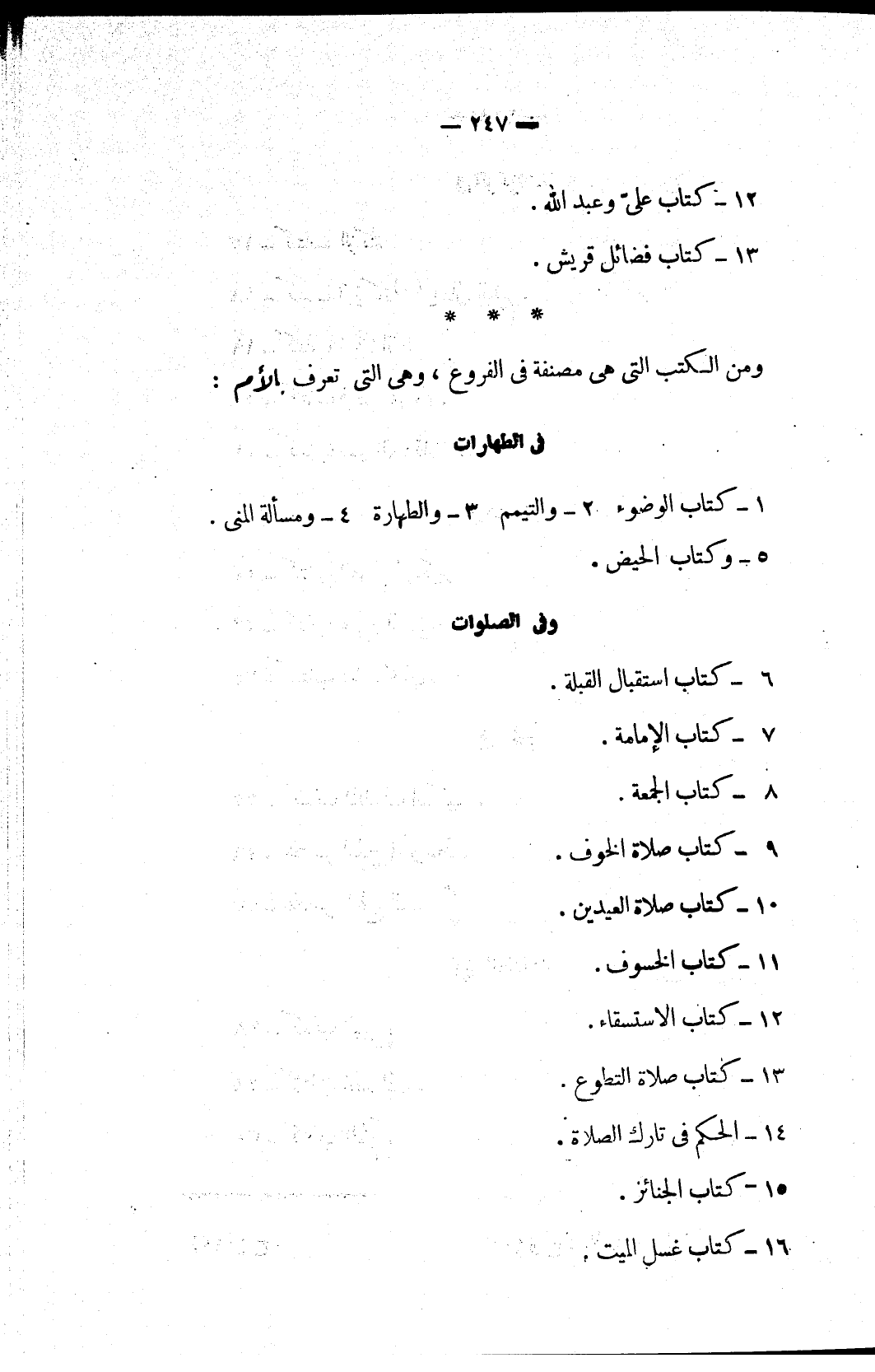 ومن الكتب التي هي مصنفة في الفروع، وهي التي تعرف بالأم: