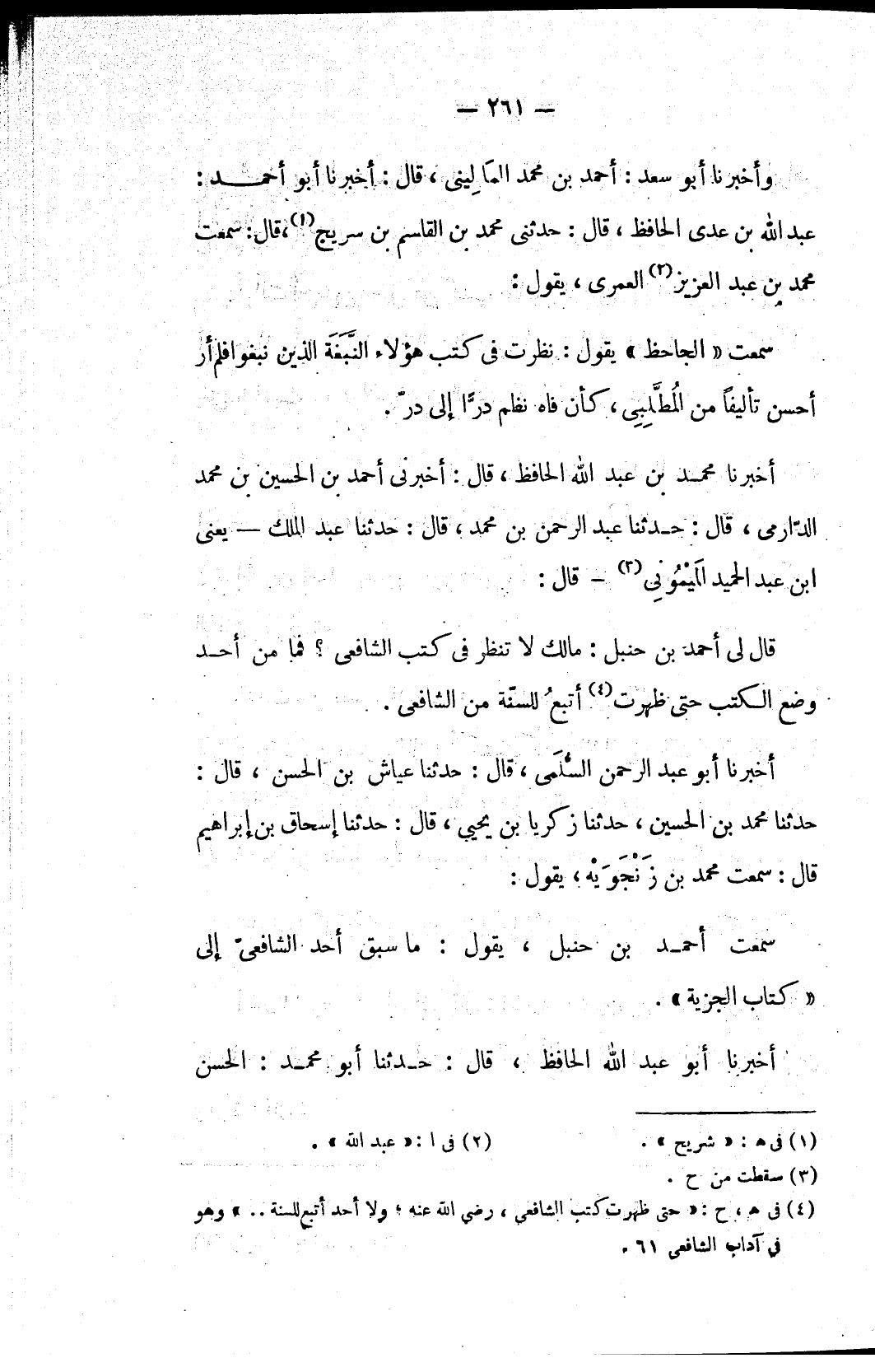(٤) في هـ، ح: «حتى ظهرت كتب الشافعي، رضي الله عنه، ولا أحد أتبع للسنة ..» وهو في آداب الشافعي ٦١.
