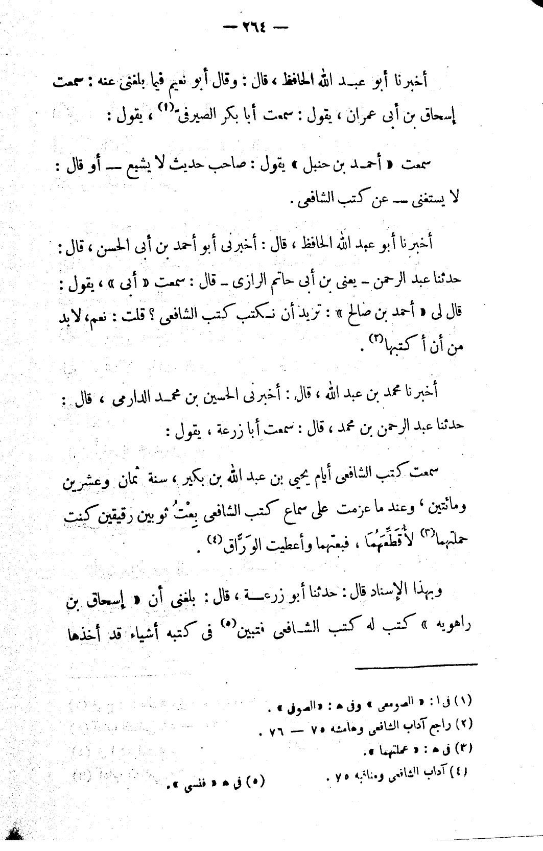 (٤) آداب الشافعي ومناقبه ٧٥.