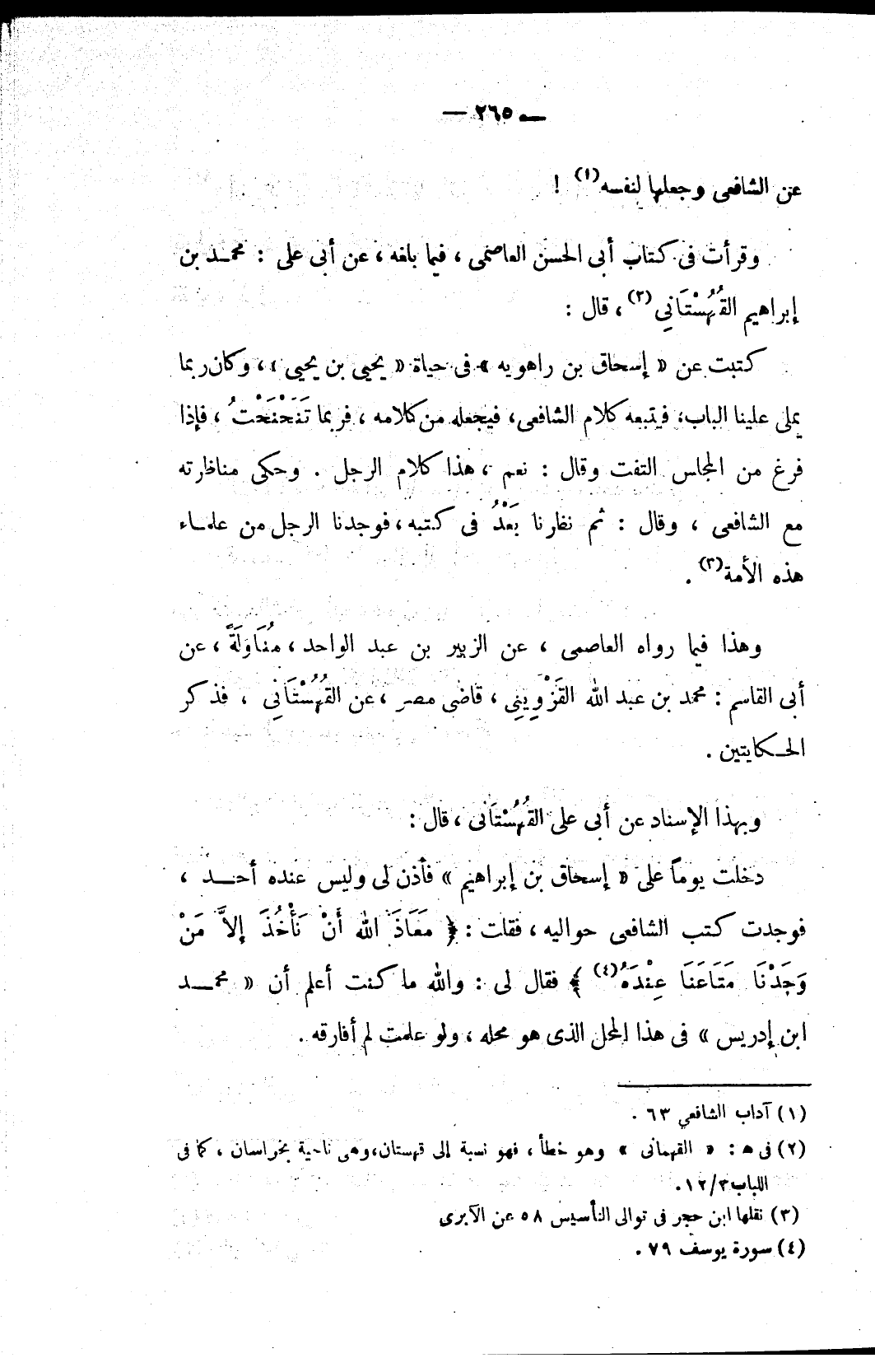 (١) آداب الشافعي ٦٣.