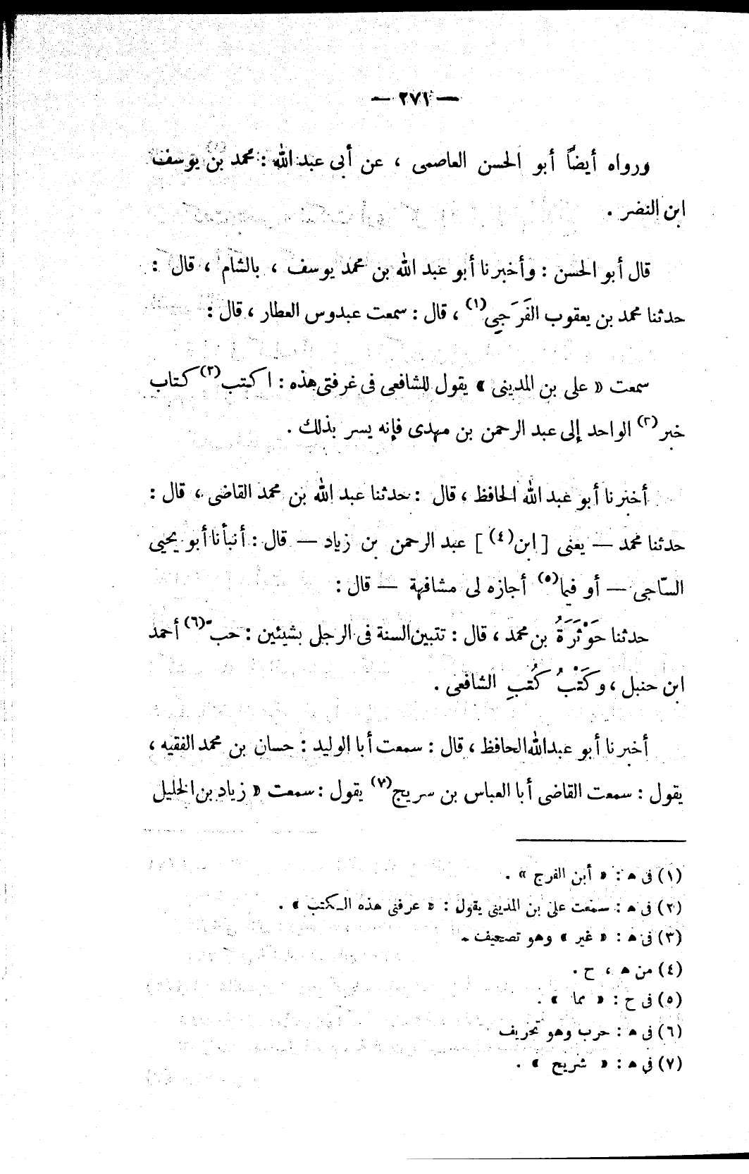 أخبرنا أبو عبد الله الحافظ، قال: سمعت أبا الوليد: حسان بن محمد الفقيه، يقول: سمعت القاضي أبا العباس بن سريج (٧) يقول: سمعت «زياد بن الخليل