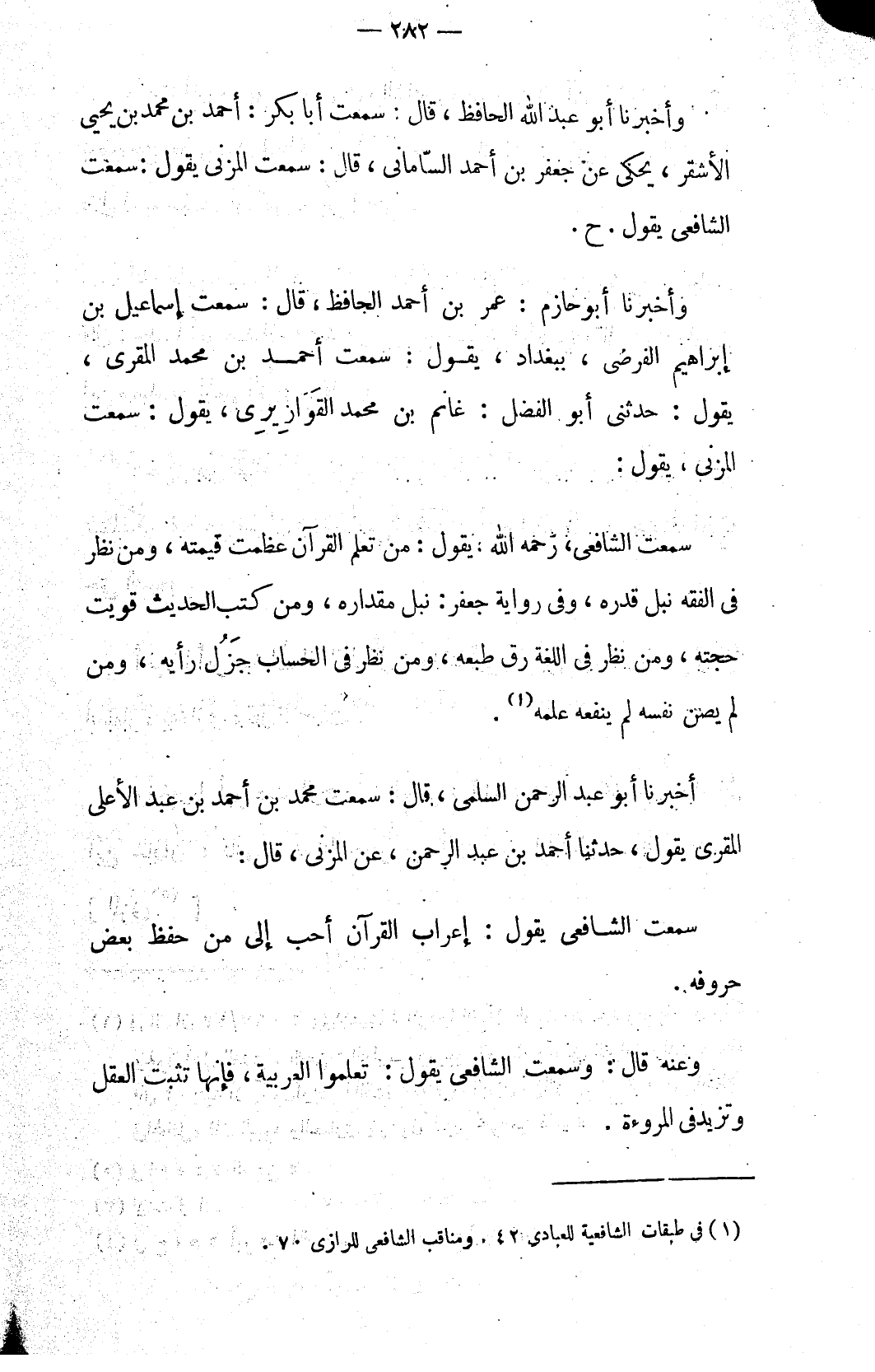 (١) في طبقات الشافعية للعبادي ٤٢. ومناقب الشافعي للرازي ٧٠.