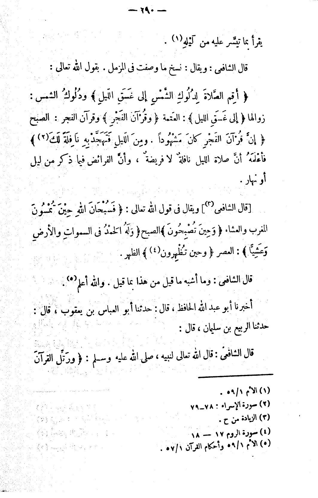 (٥) الأم ١/ ٥٩ وأحكام القرآن ١/ ٥٧.