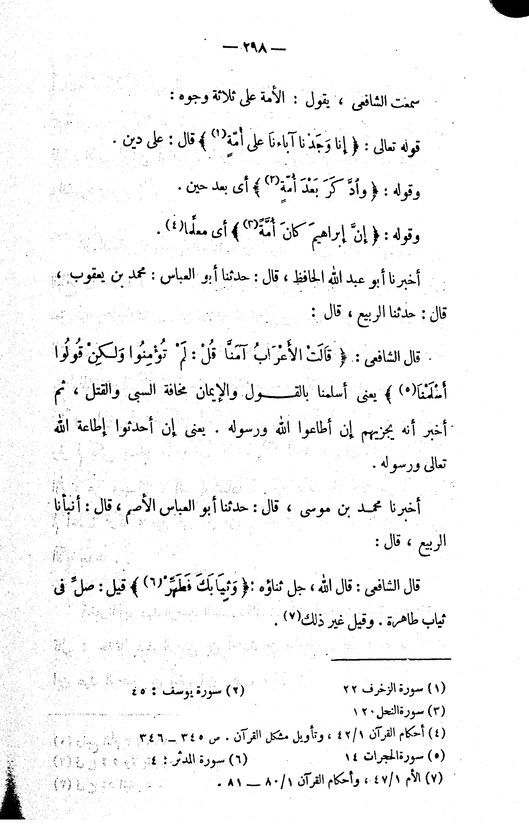 (٧) الأم ١/ ٤٧، وأحكام القرآن ١/ ٨٠ – ٨١.