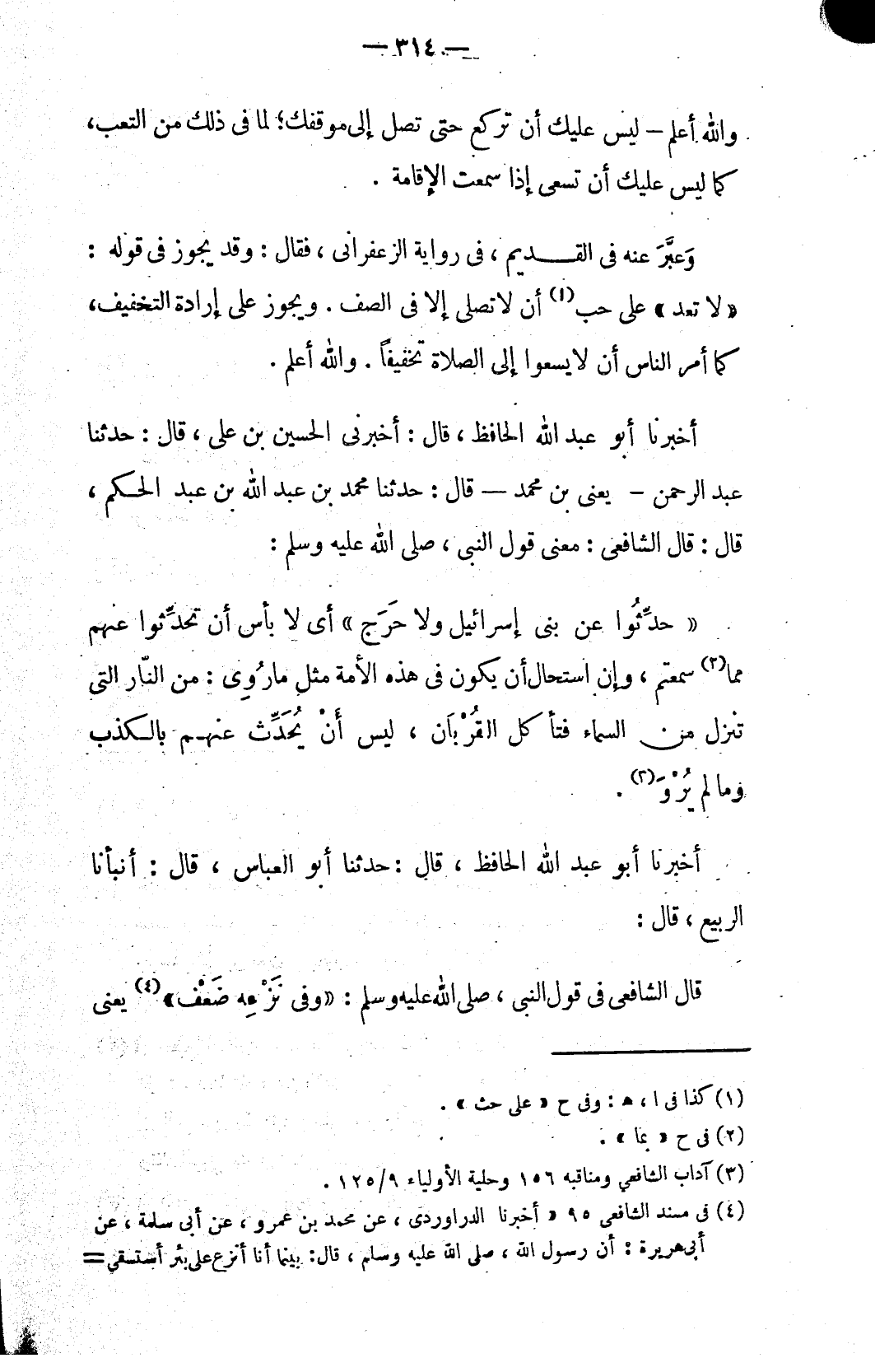 (٣) آداب الشافعي ومناقبه ١٥٦ وحلية الأولياء ٩/ ١٢٥.