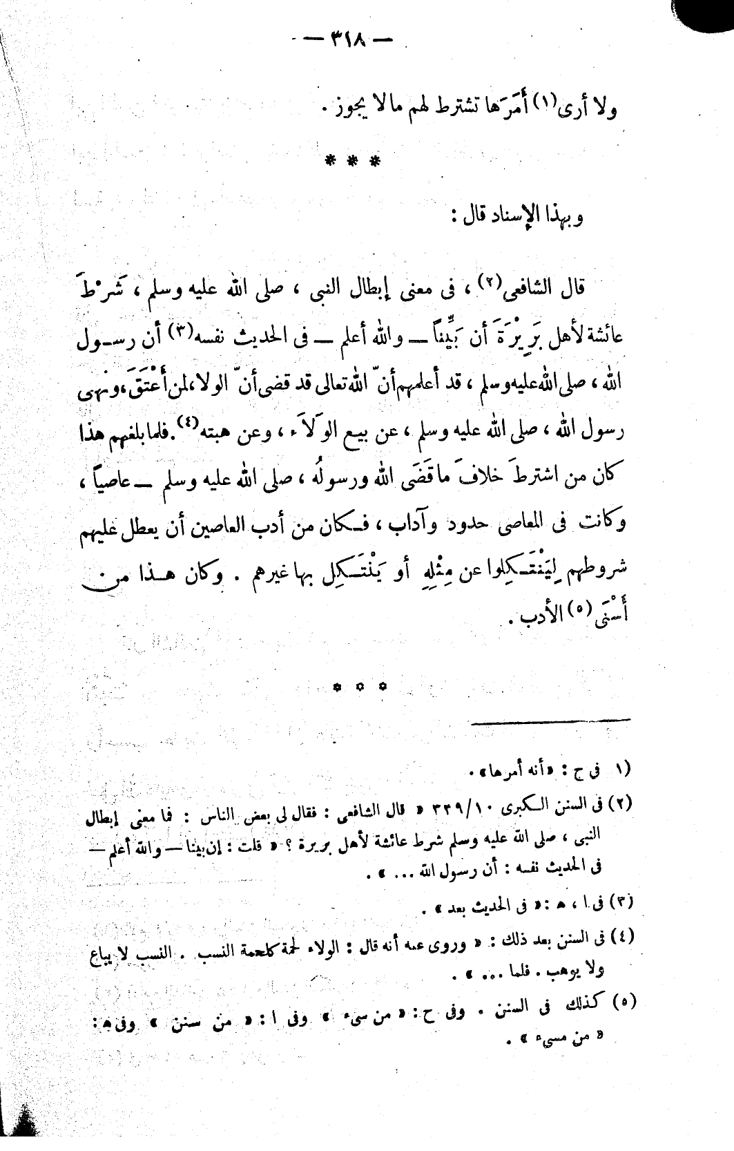 (٢) في السنن الكبرى ١٠/ ٣٣٩ «قال الشافعي: فقال لي بعض الناس: فما معنى إبطال النبي، صلى الله عليه وسلم شرط عائشة لأهل بريرة؟ «قلت؛ إن بينا - والله أعلم - في الحديث نفسه: أن رسول الله ...».