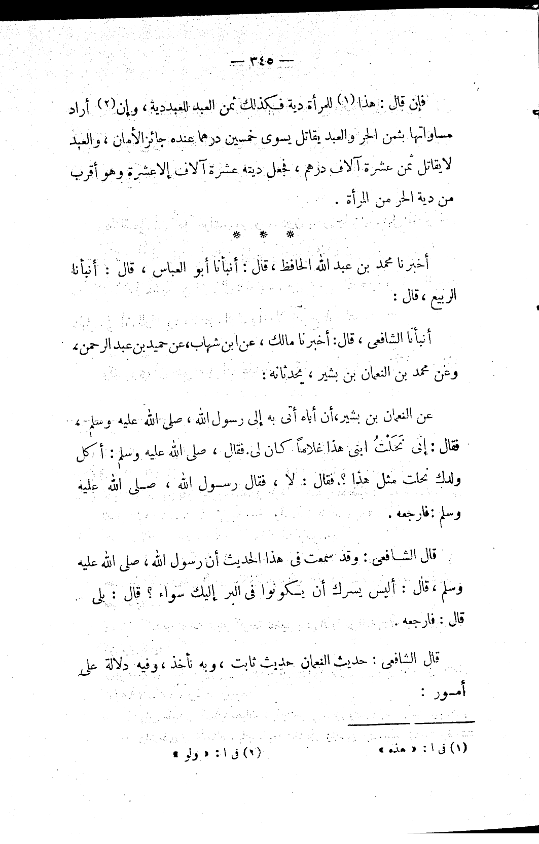 قال الشافعي: حديث النعمان حديث ثابت، وبه نأخذ، وفيه دلالة على أمور: