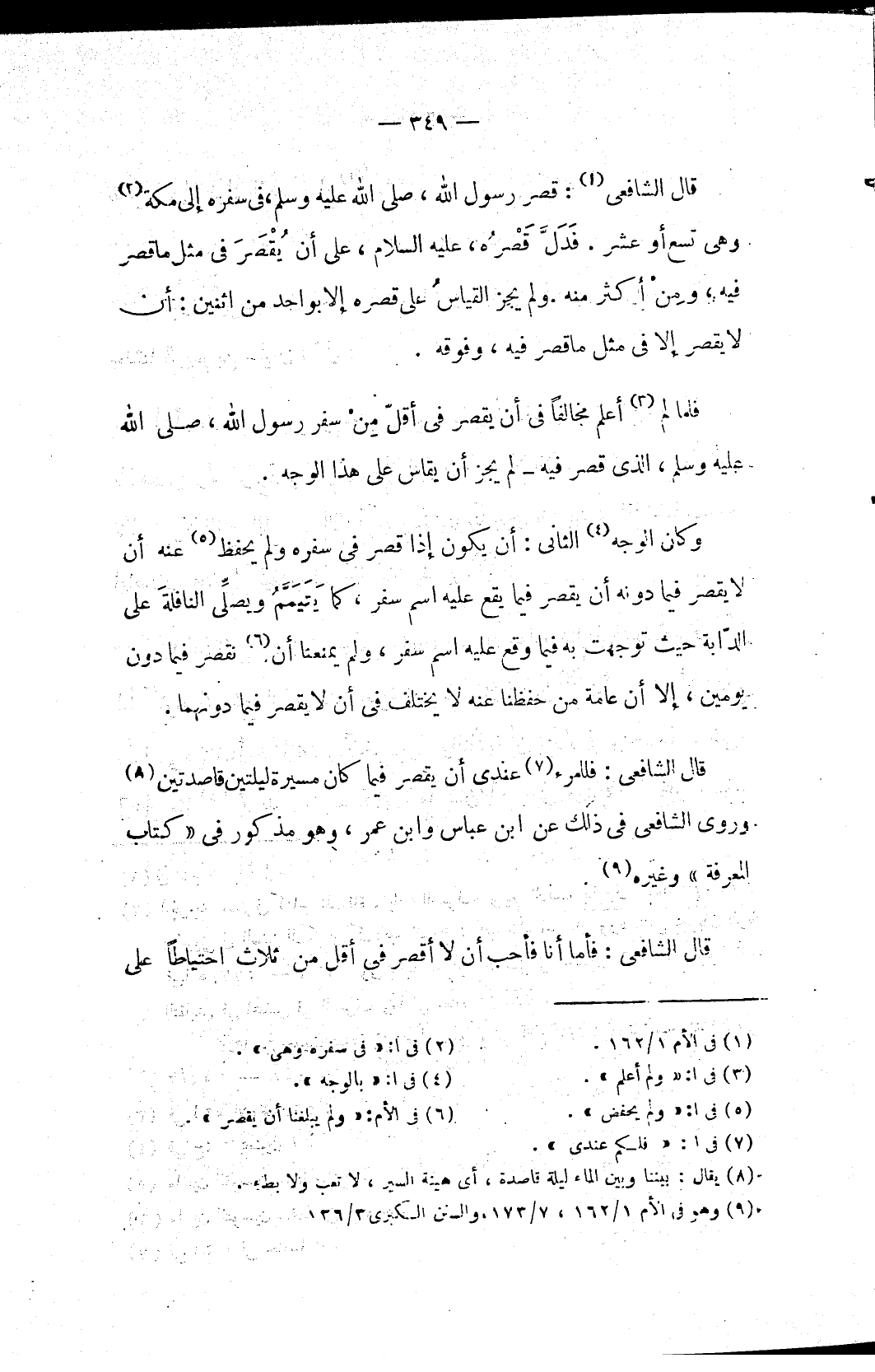 (٩) وهو في الأم ١/ ١٦٢، ٧/ ١٧٣، والسنن الكبرى ٣/ ١٢٦