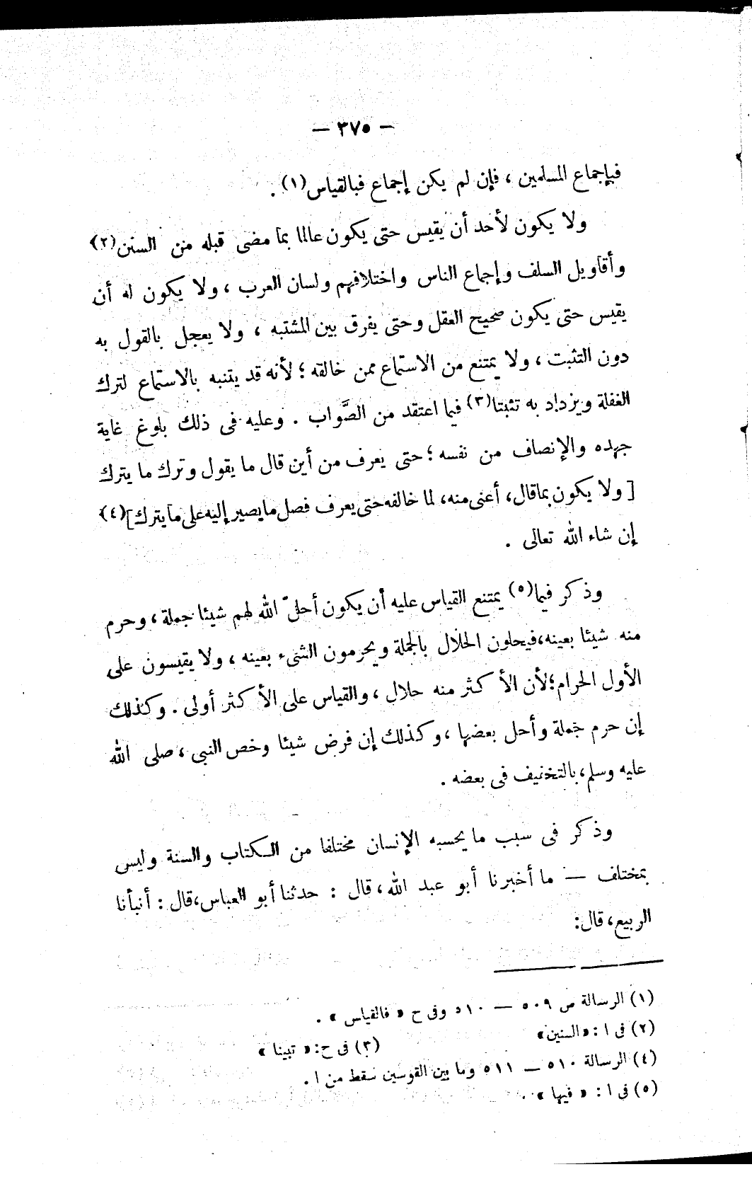 (١) الرسالة ص ٥٠٩ - ٥١٠ وفي ح «فالقياس».