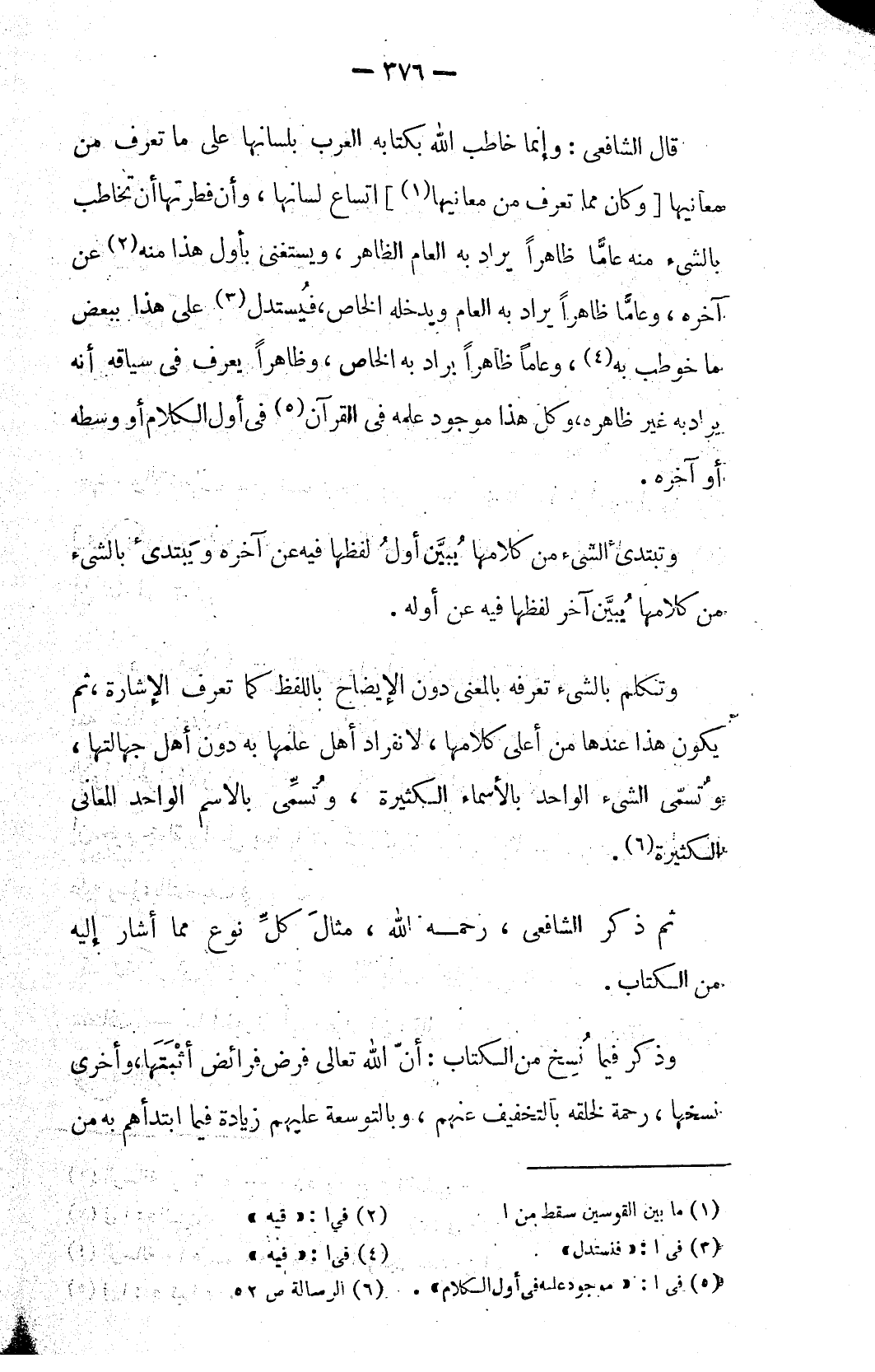 ثم ذكر الشافعي، رحمه الله، مثالَ كلِّ نوع مما أشار إليه من الكتاب.