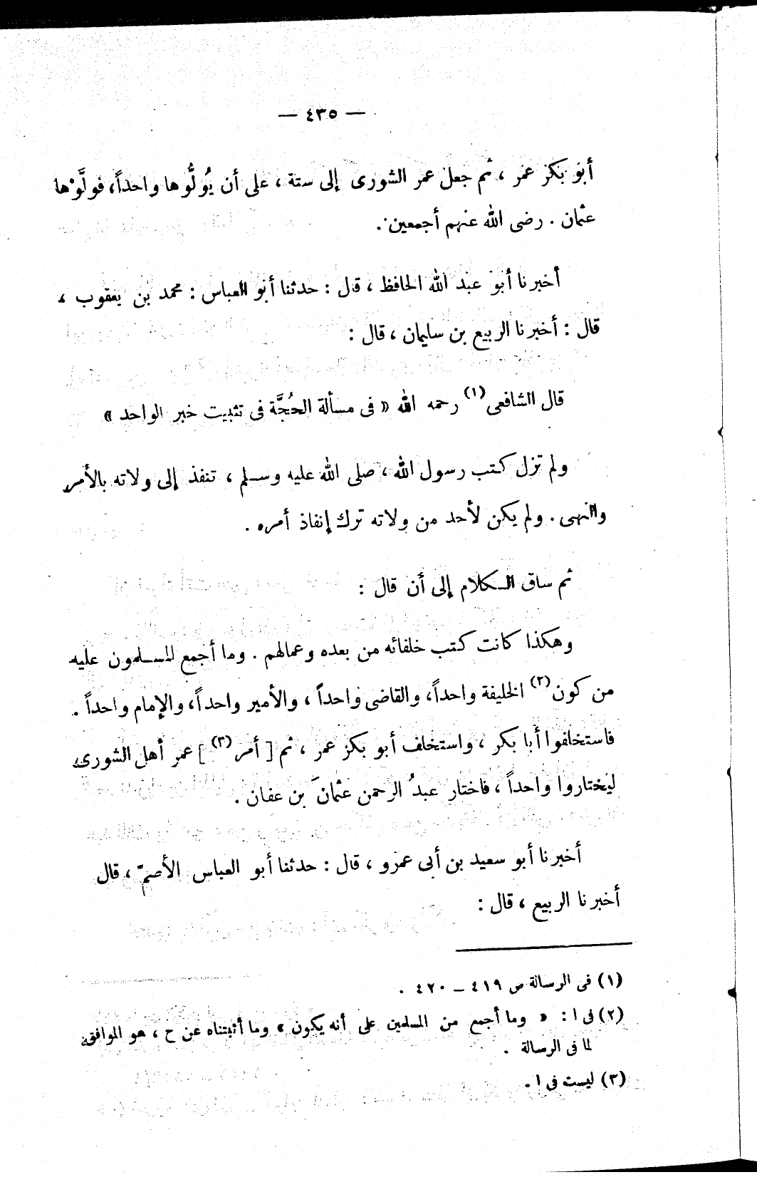 قال الشافعي (١) رحمه الله «في مسألة الحُجَّة في تثبيت خبر الواحد»