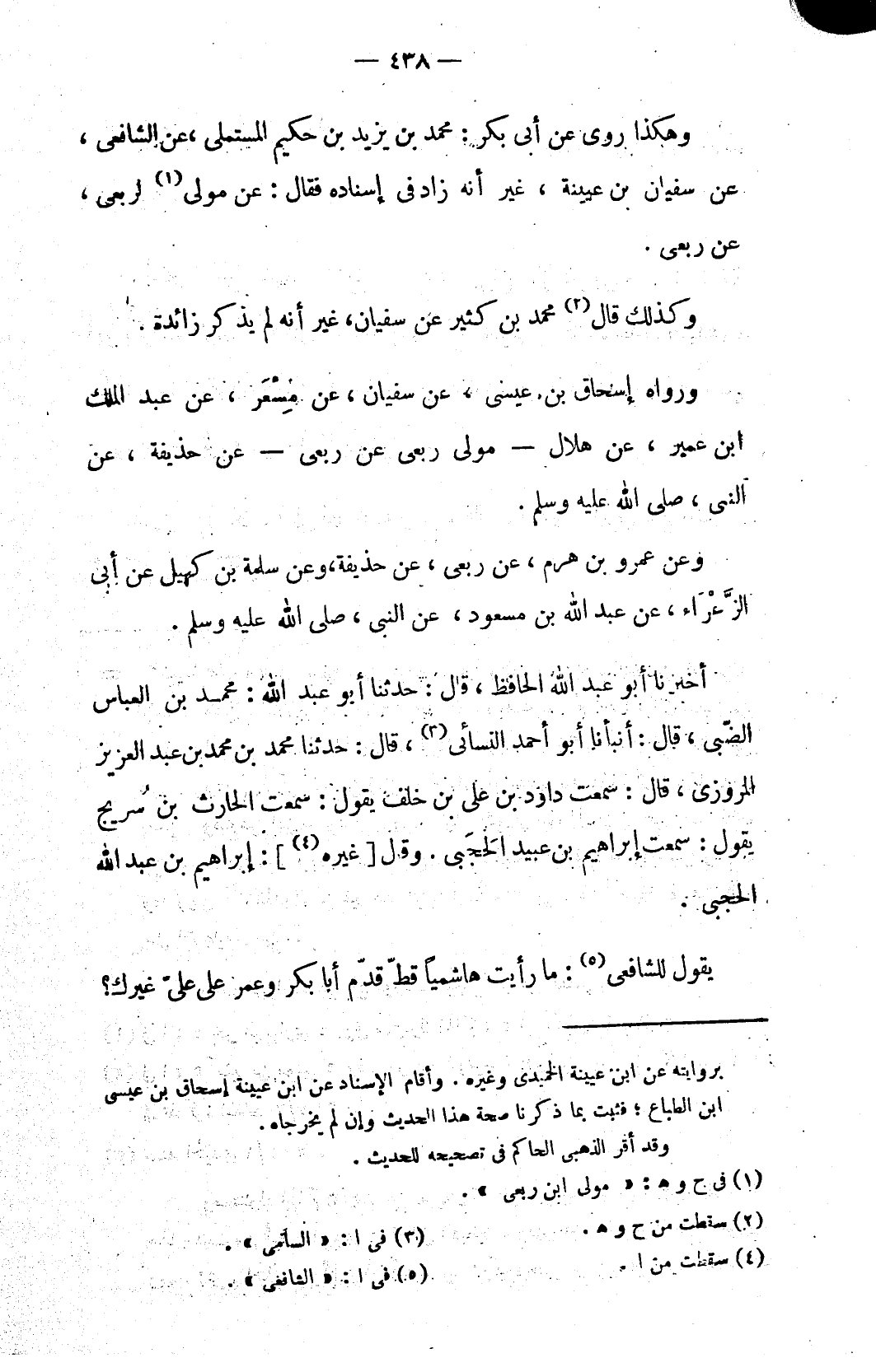 وهكذا روى عن أبي بكر: محمد بن يزيد بن حكيم المستملي، عن الشافعي، عن سفيان بن عيينة، غير أنه زاد في إسناده فقال: عن مولى (١) لربعي، عن ربعي.