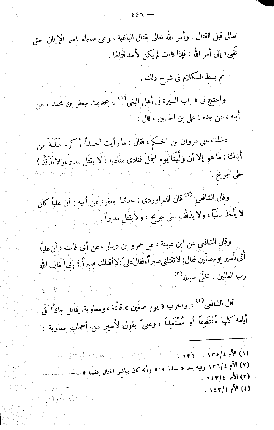 واحتج في «باب السيرة في أهل البغي (١)» بحديث جعفر بن محمد، عن أبيه، عن جده: علي بن الحسين، قال: