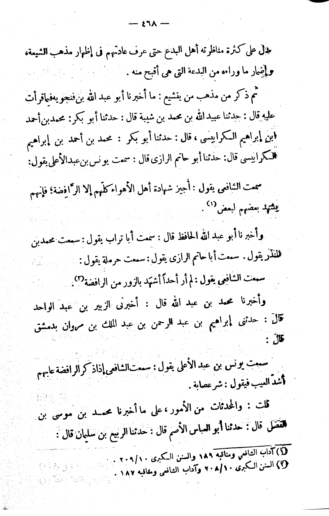 (٢) السنن الكبرى ١٠/ ٢٠٨ وآداب الشافعي ومناقبه ١٨٧.