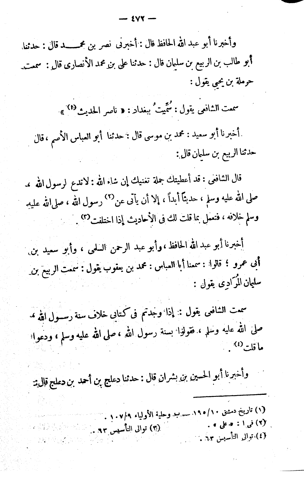 سمعت الشافعي يقول: سُمِّيتُ ببغداد: «ناصر الحديث (١)»