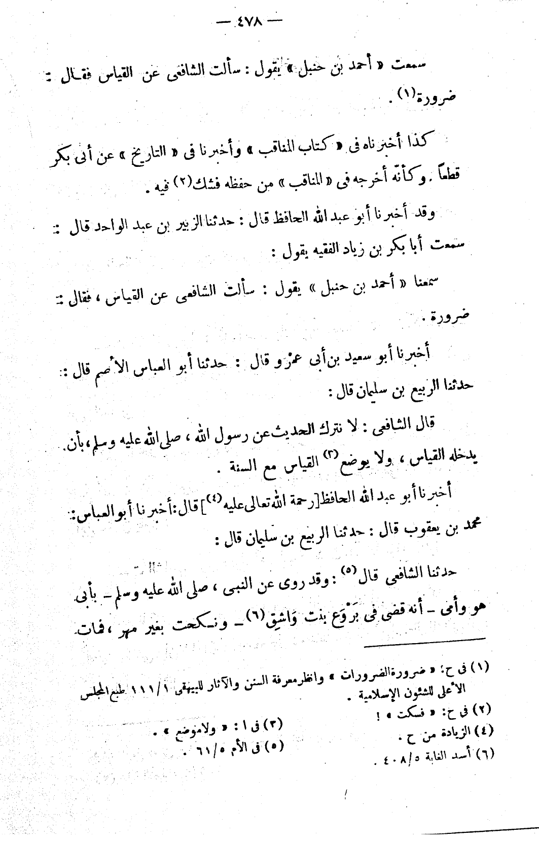 سمعت «أحمد بن حنبل» يقول: سألت الشافعي عن القياس فقال: ضرورة (١).